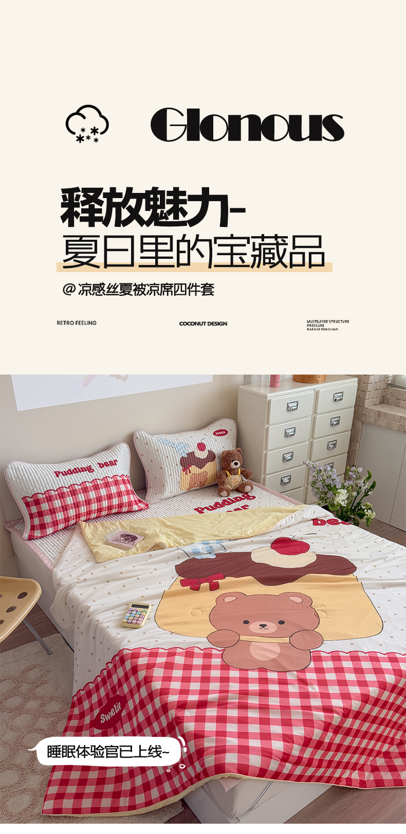 • 91家纺网 家纺一手货源 找家纺 贝扬思家纺 2026新款数码大版凉感丝夏被凉席系列 小熊生日