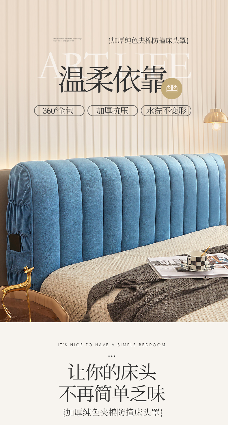 (总)情恒家纺 2025新款细麻印花加厚双面全包床头罩,碧蓝,米驼,辰灰,酱红,星黑