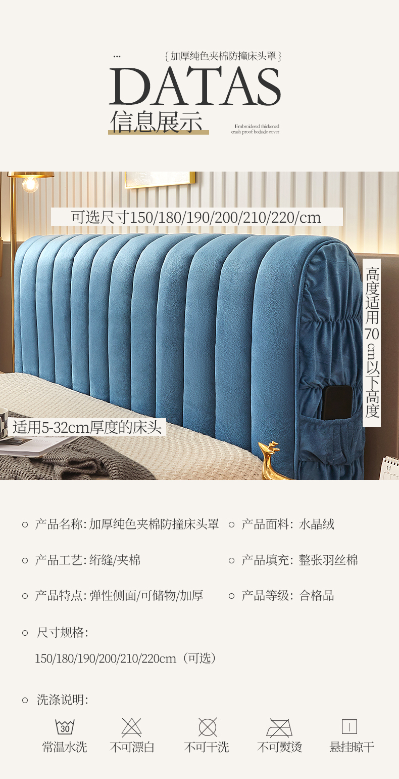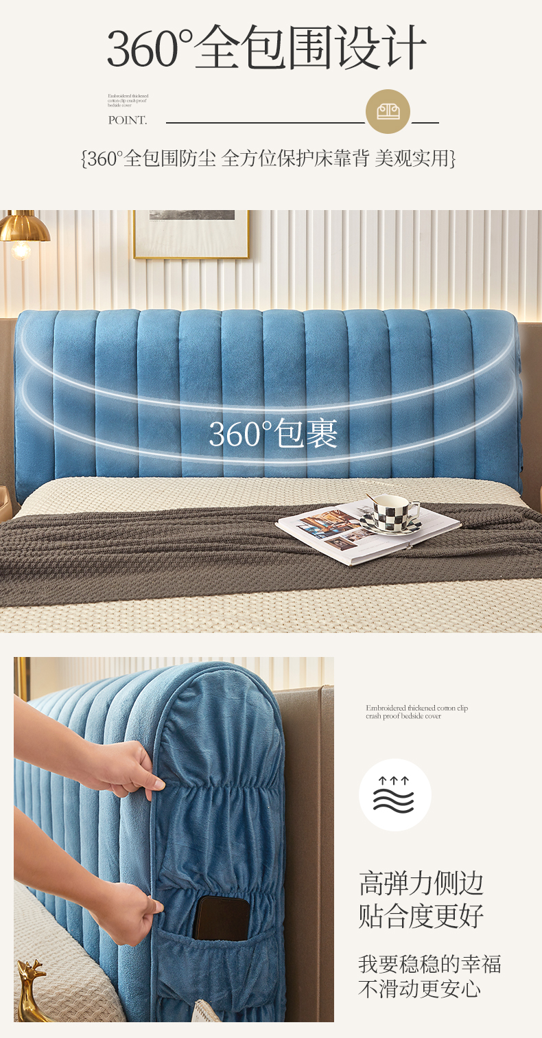 (总)情恒家纺 2025新款兔兔绒抽条加厚床头罩,宾利蓝,星耀黑,咖啡棕,卡其,奶油白,月光灰