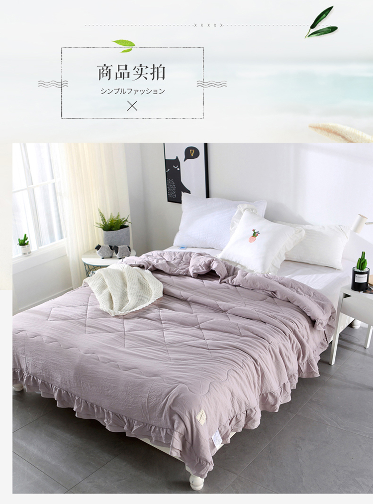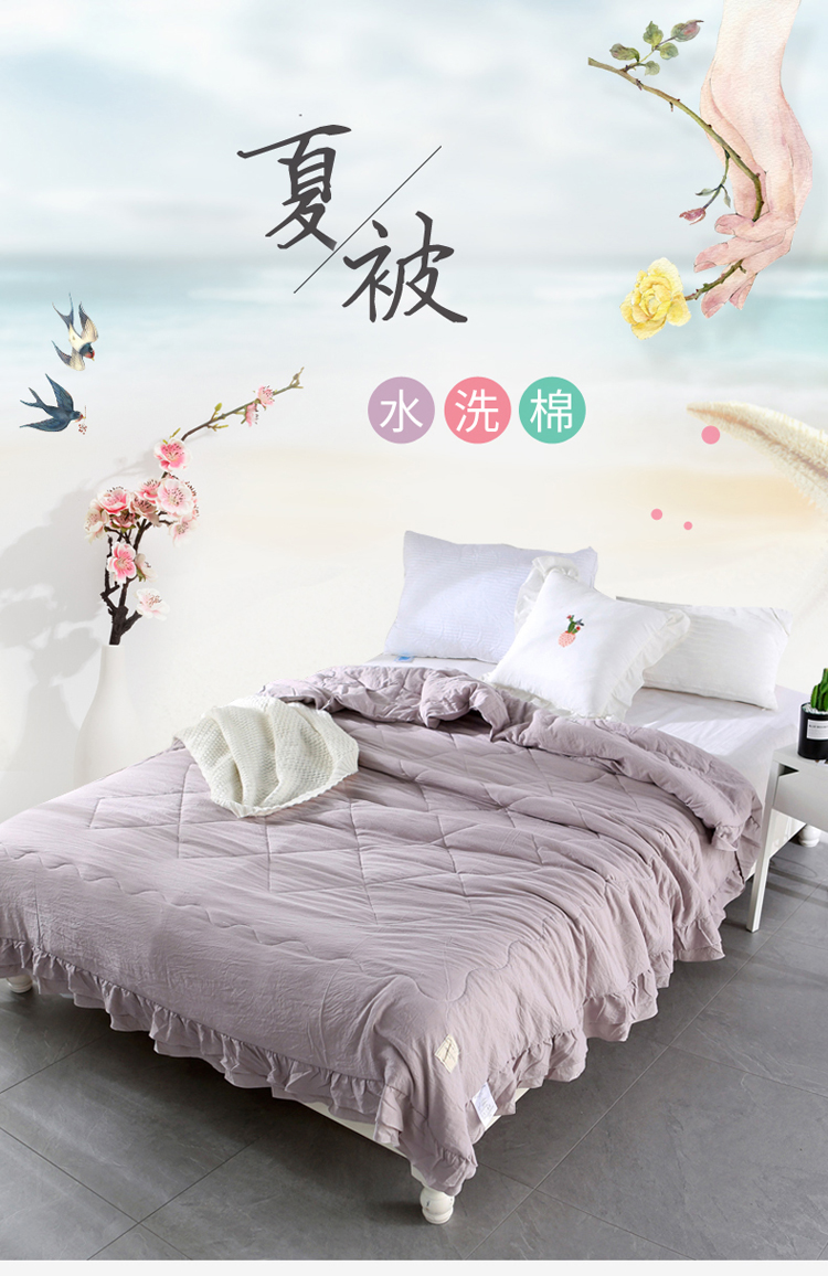 畅畅家纺 双层荷叶边水洗棉夏被空调被夏凉被可搭配四件套灰色