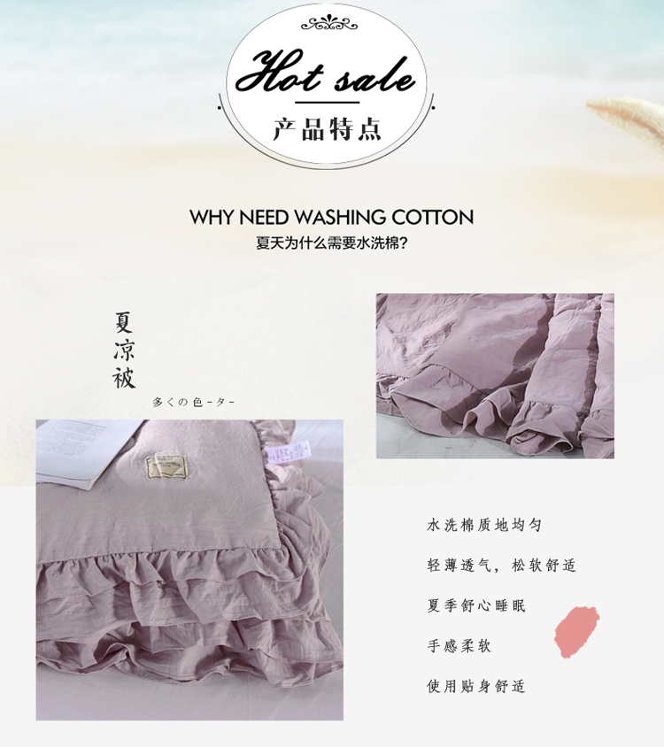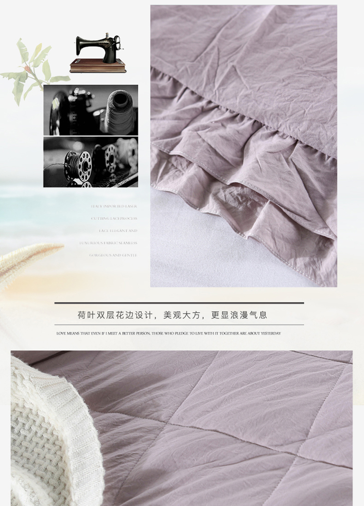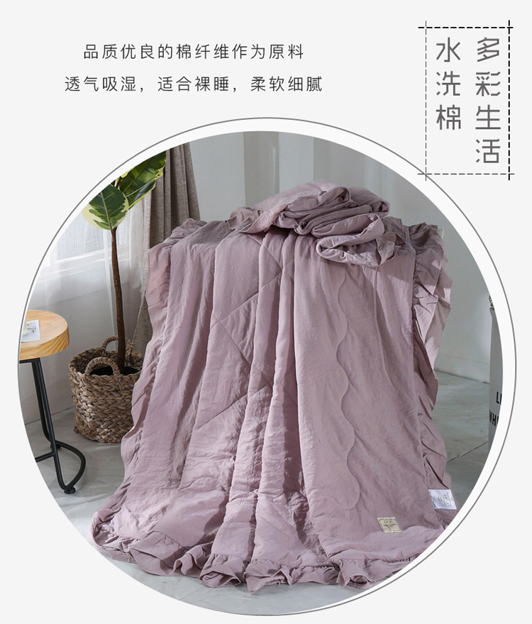 • 91家纺网 家纺一手货源 找家纺 畅畅家纺 双层荷叶边水洗棉夏被空调被夏凉被可搭配四件套灰色