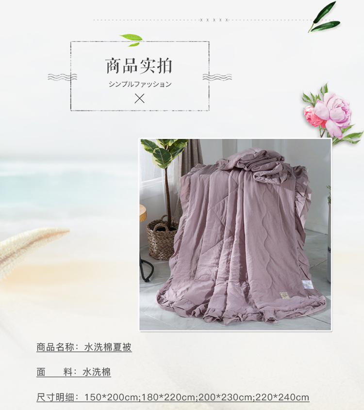当前位置: 91家纺网 > 商品网购 > 被子 > 普通夏被 > 畅畅家纺 双层荷叶边水洗棉夏被空调被夏凉被可搭配四件套灰色
