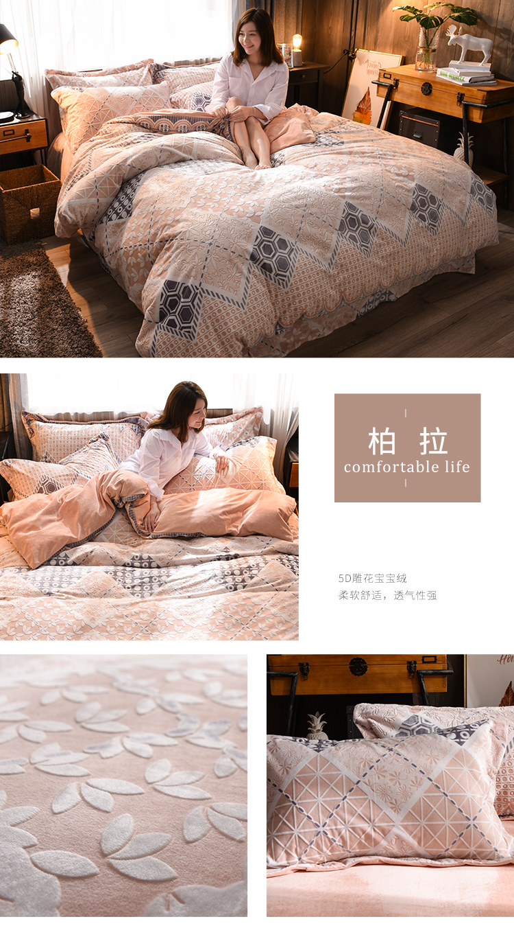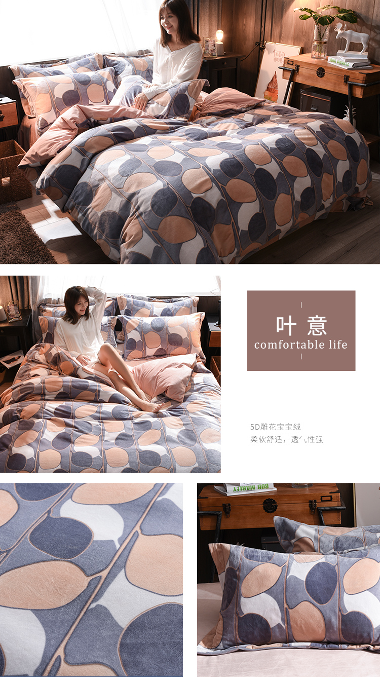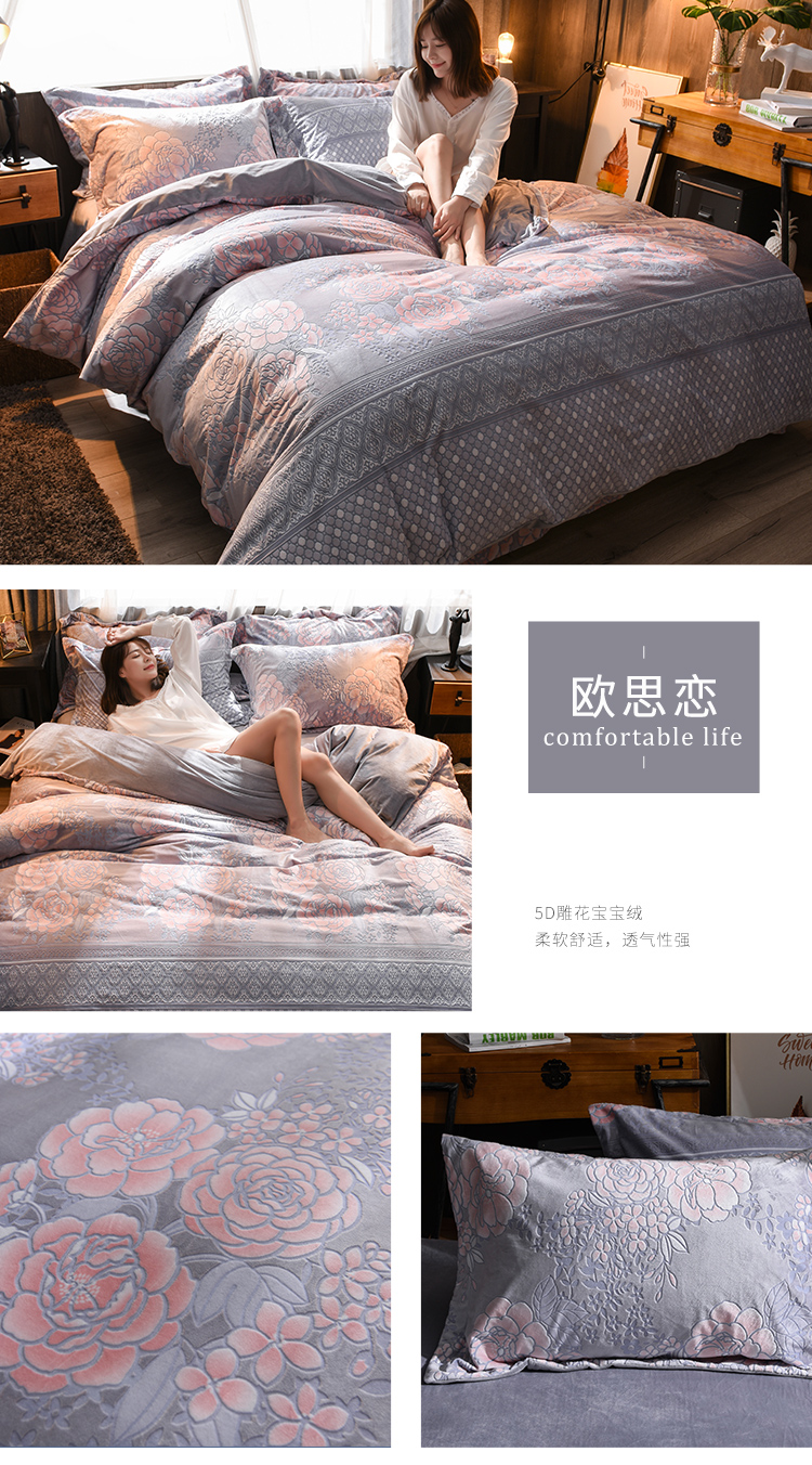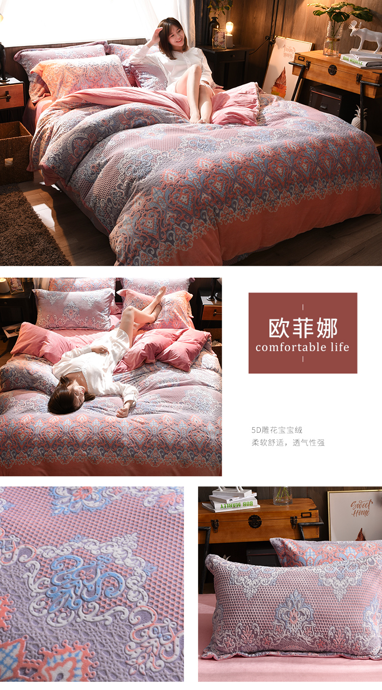 (总)芃成家纺 5D雕花绒四件套随机花边