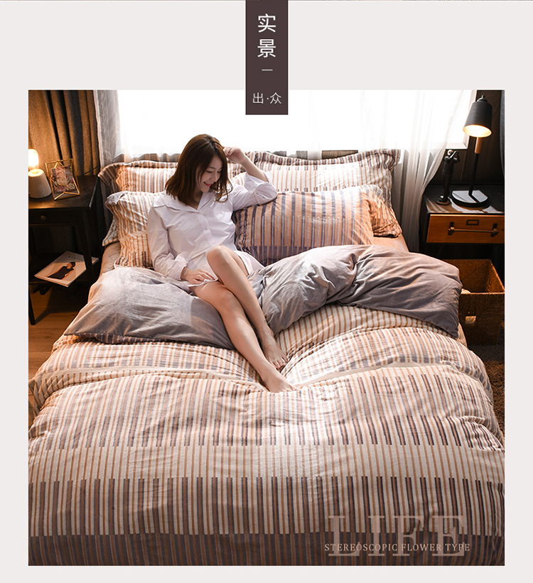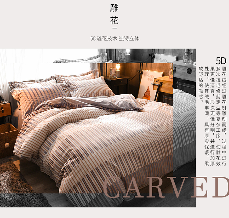 芃成家纺 5D雕花绒四件套 图尔博随机花边