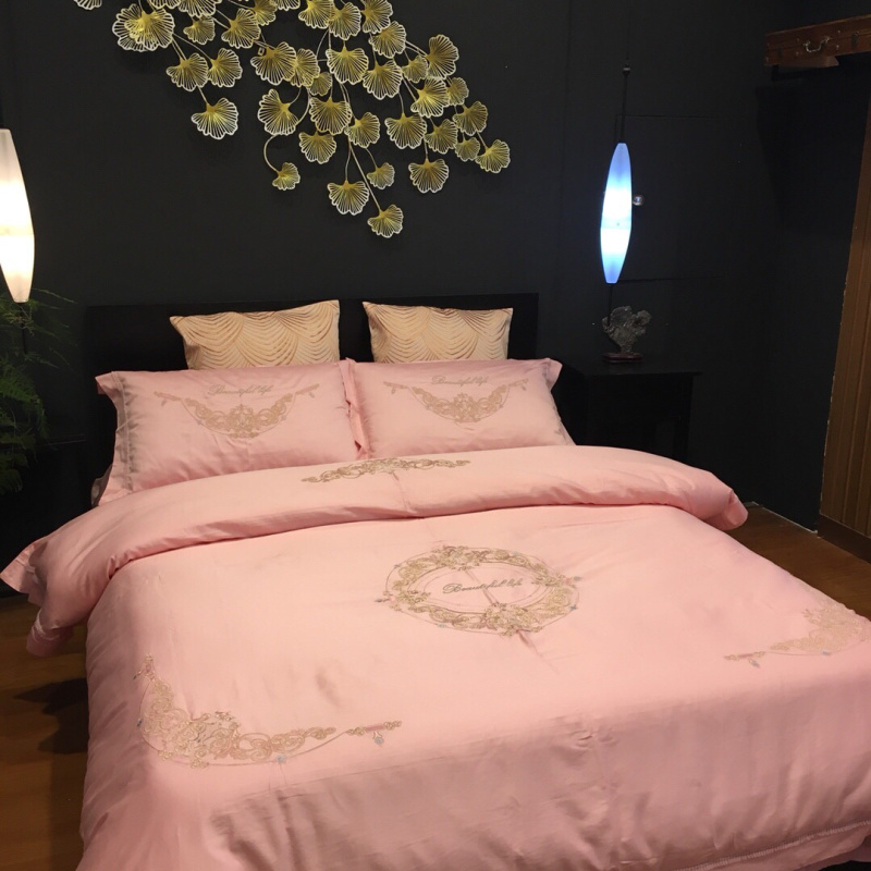 (总)玖玖爱家纺 2023新款120支贡缎长绒棉刺绣梦柔系列四件套,梦柔-香槟金,梦柔-香橙桔,梦柔-高级灰,梦柔-水蓝,梦柔-芙蓉玉