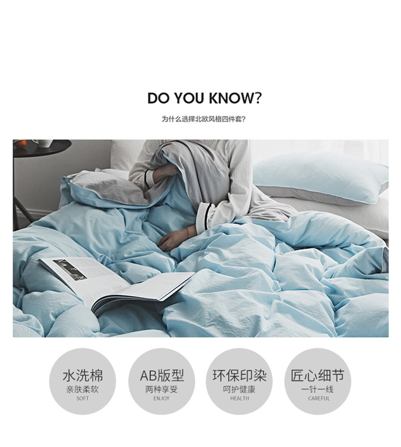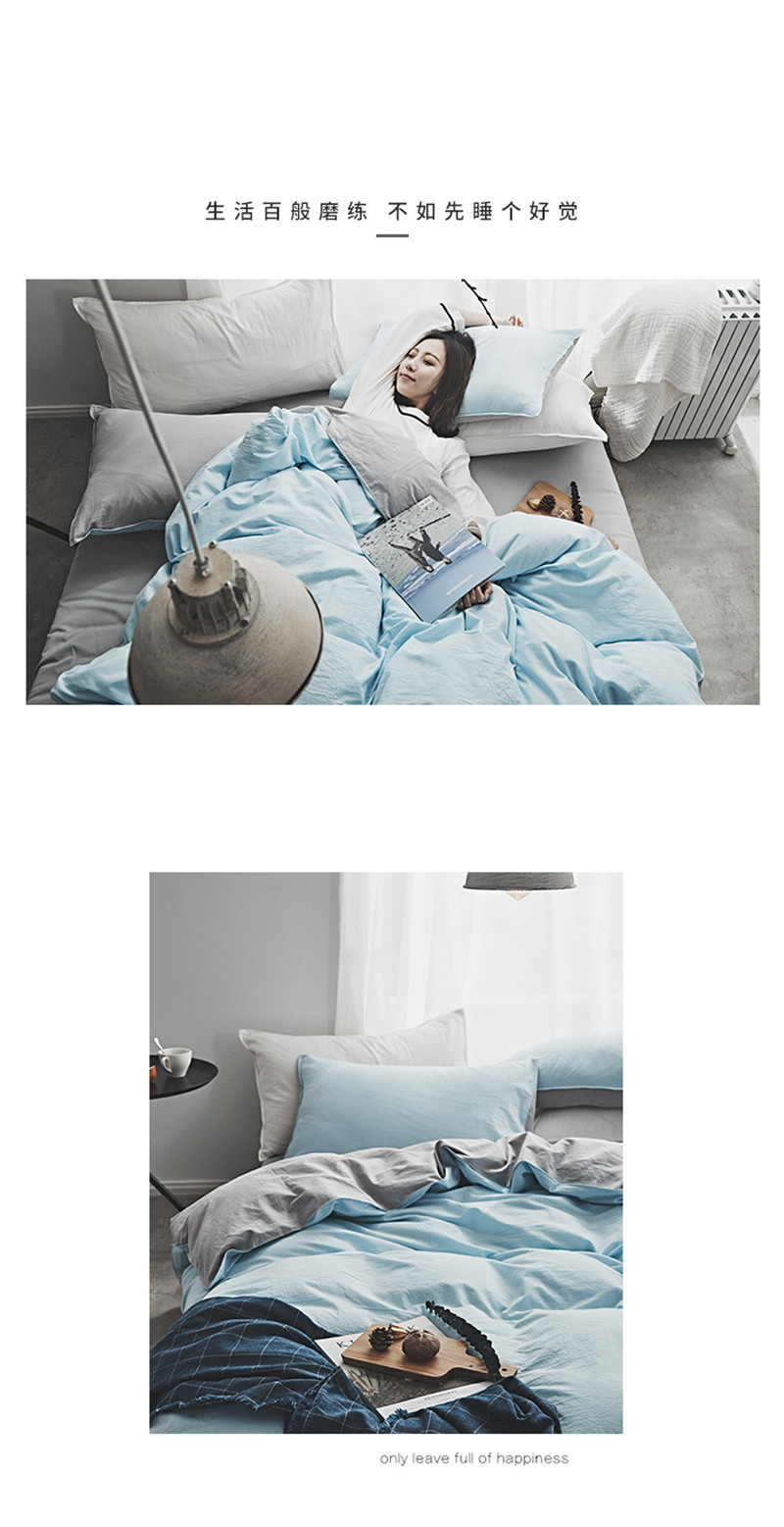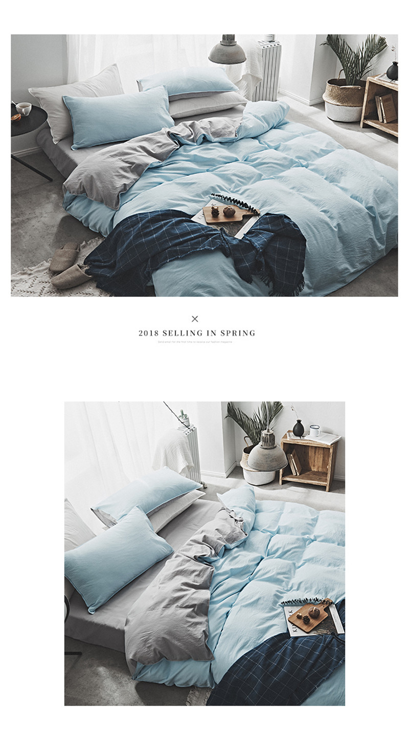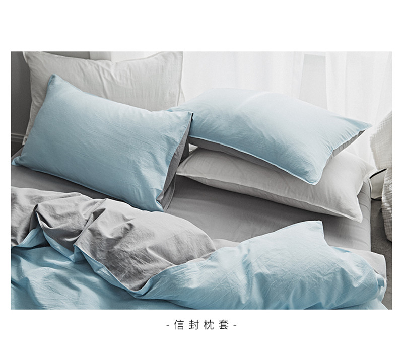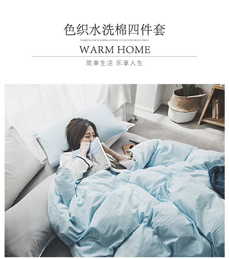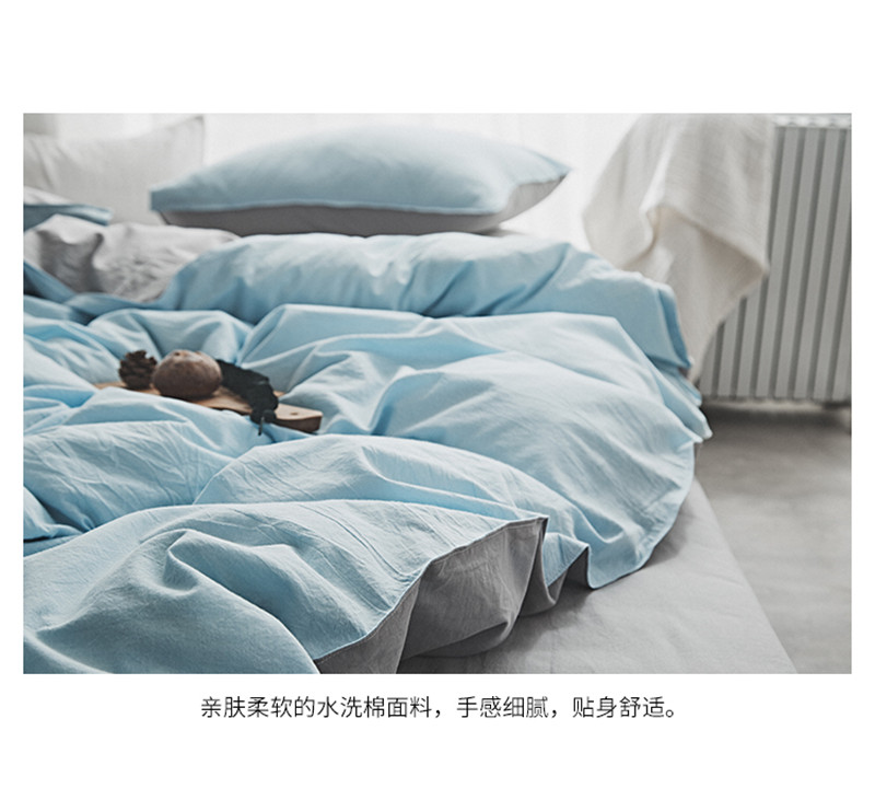 2018素色水洗四件套 微蓝