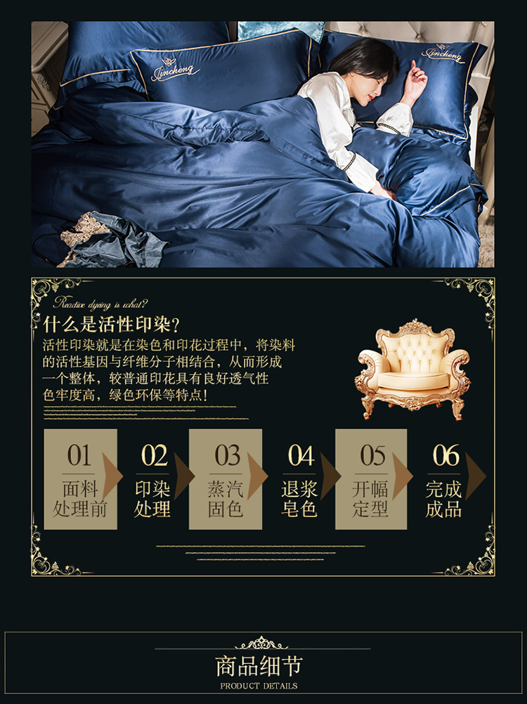 商品名称:苹果星家纺 2019水洗真丝刺绣四件套 墨蓝
