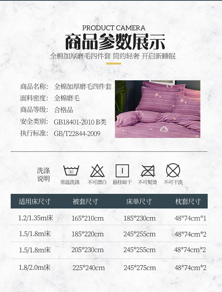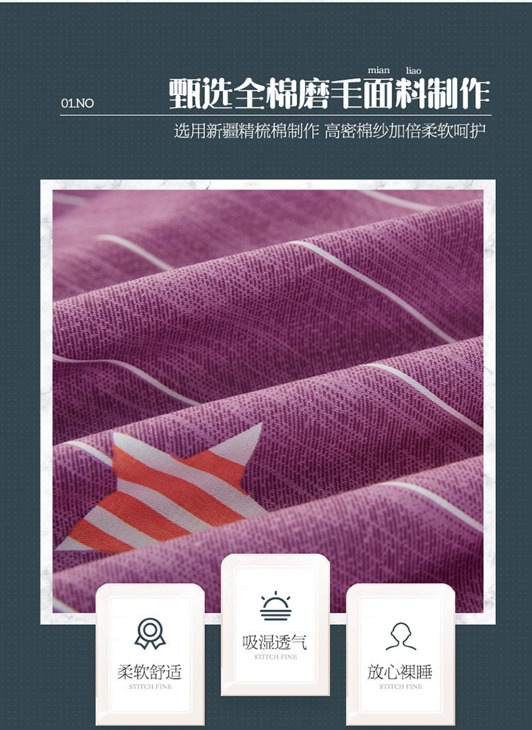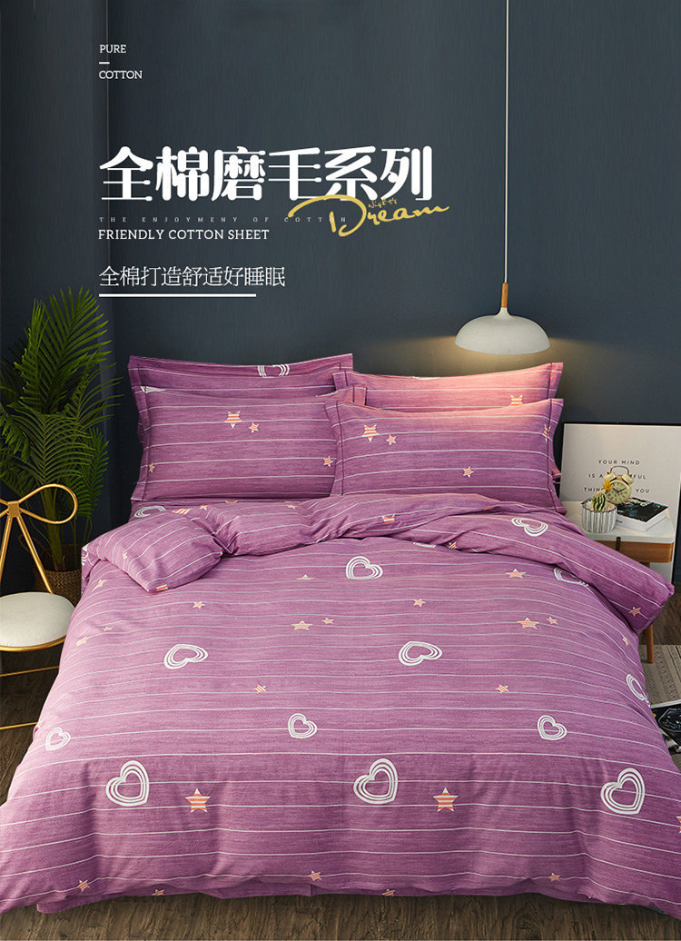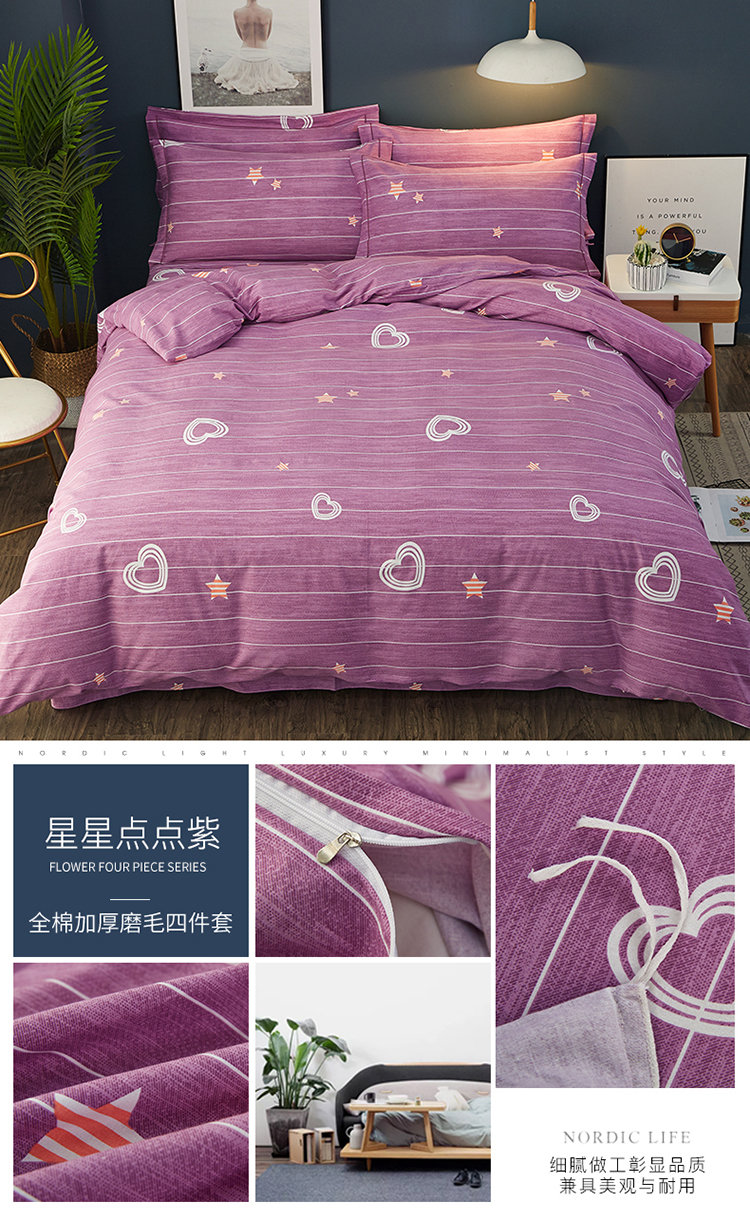 商品名称:雲归梦 2019新款多规格全棉加厚生态磨毛四件套星晨点点-紫