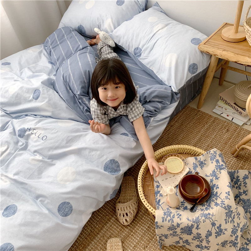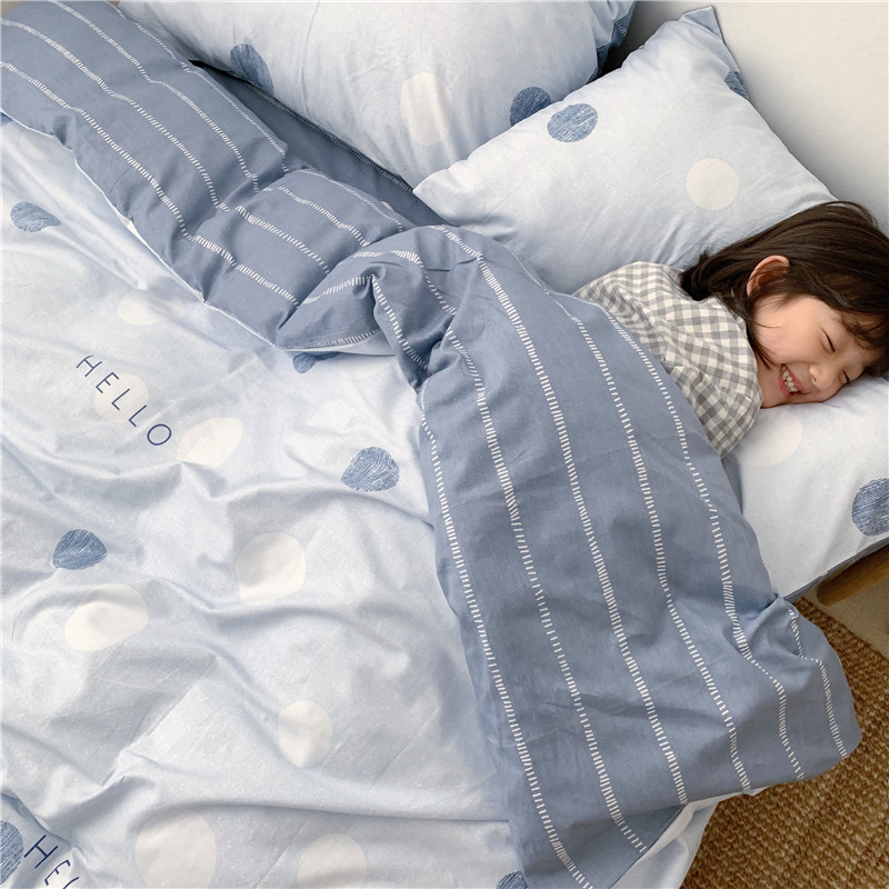 商品名称:时年 2019全棉小可爱四件套 hello圆点蓝