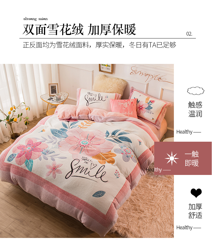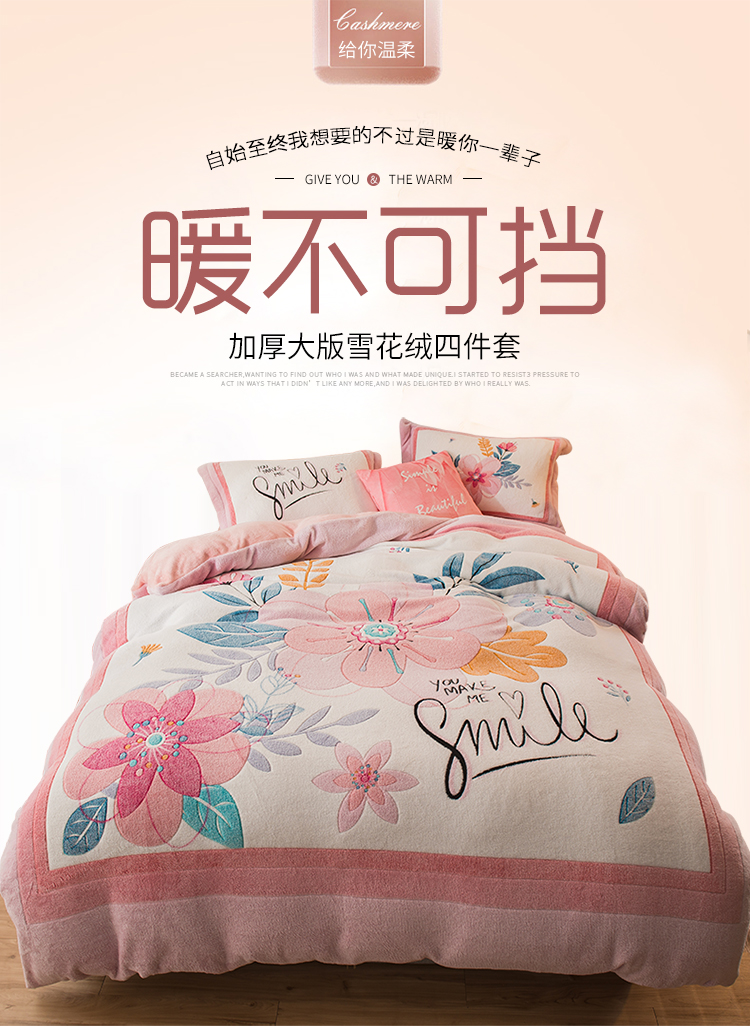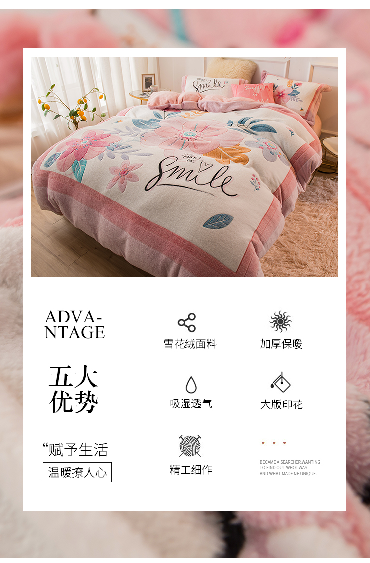 商品名称:懒猫家纺 2020新款大版雪花绒四件套 花之恋曲