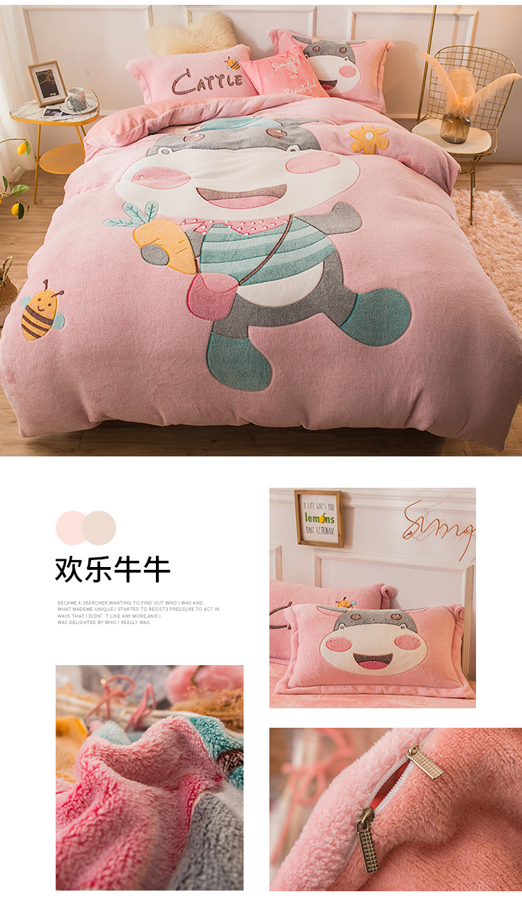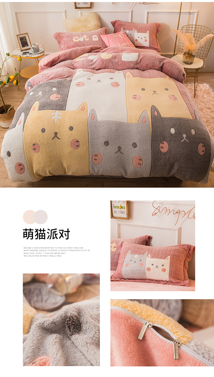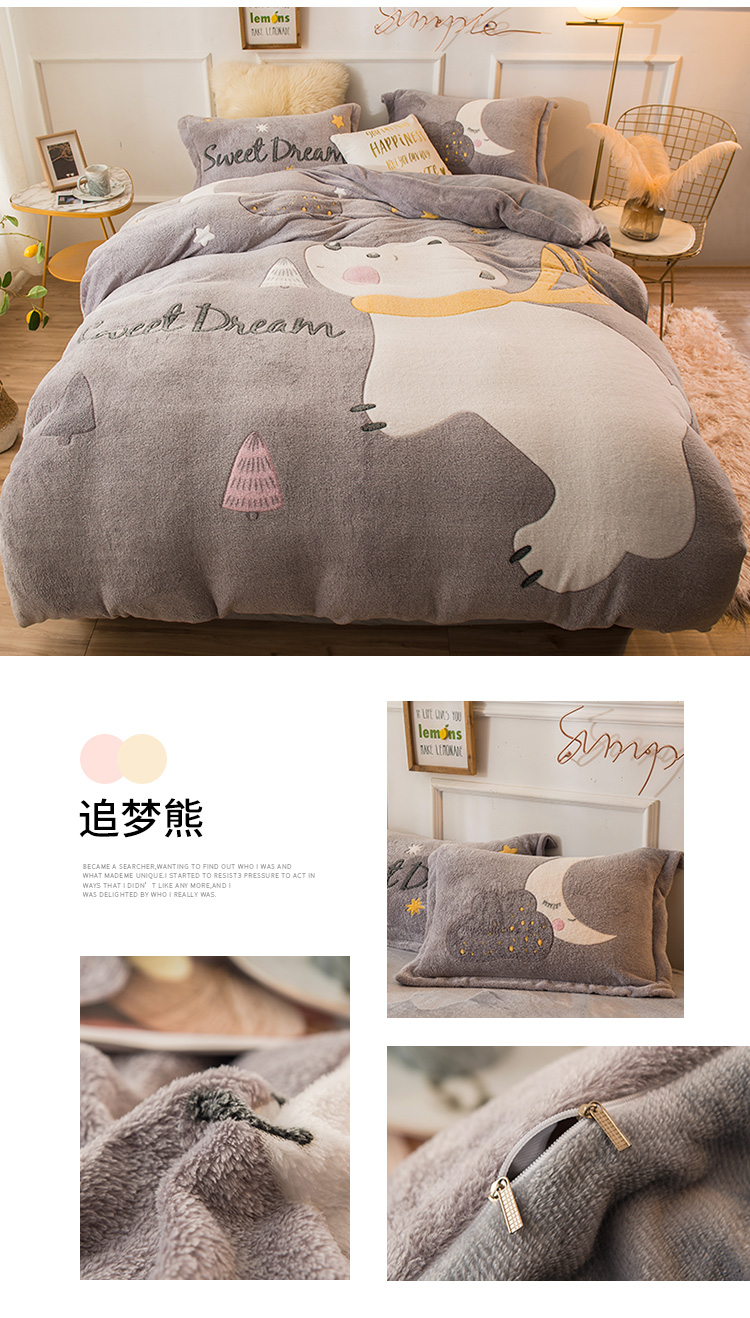 (总)懒猫家纺 2025新款亲肤舒适牛奶绒四件套-可可小姐系列,可可小姐-瓷白,可可小姐-水粉