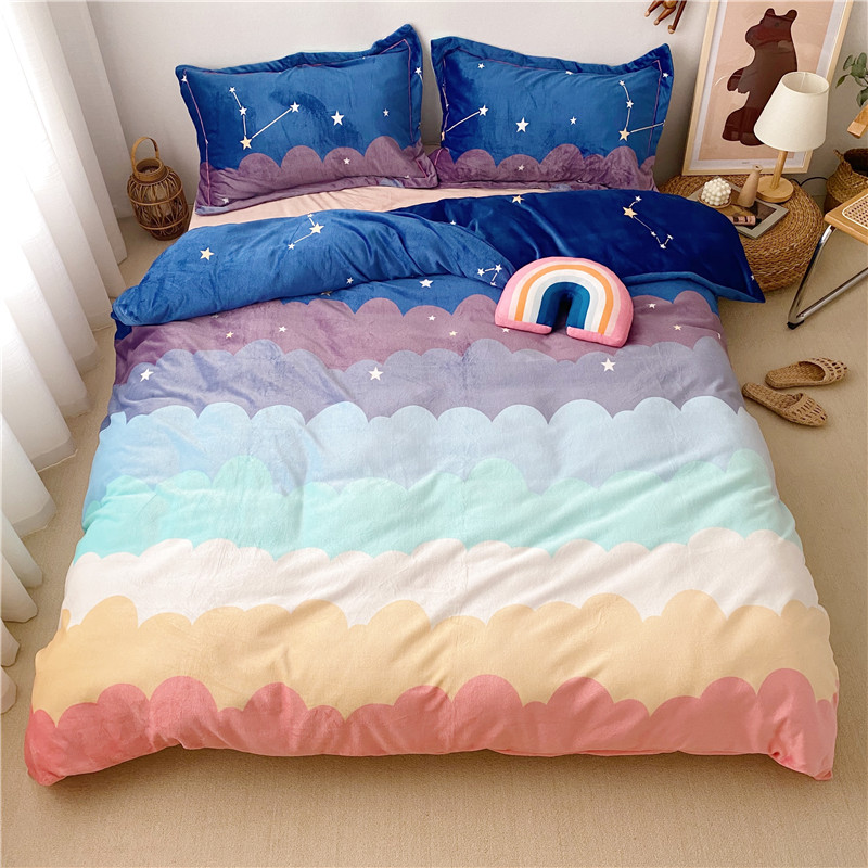 (总)时年 2019牛奶绒印花保暖四件套童模图