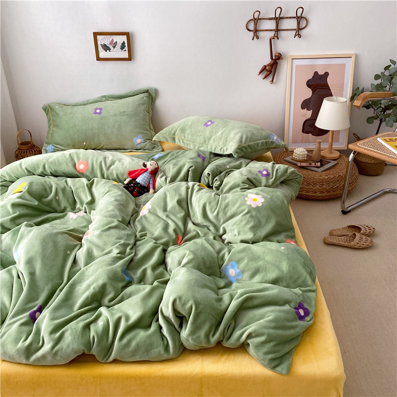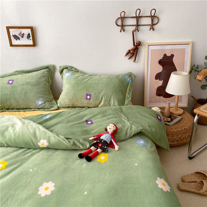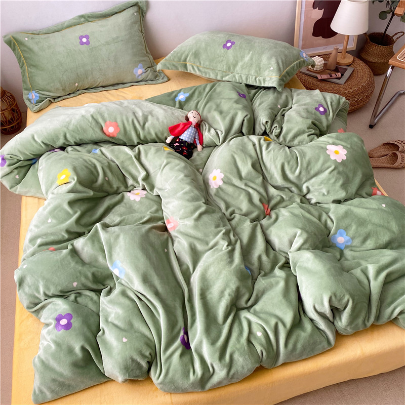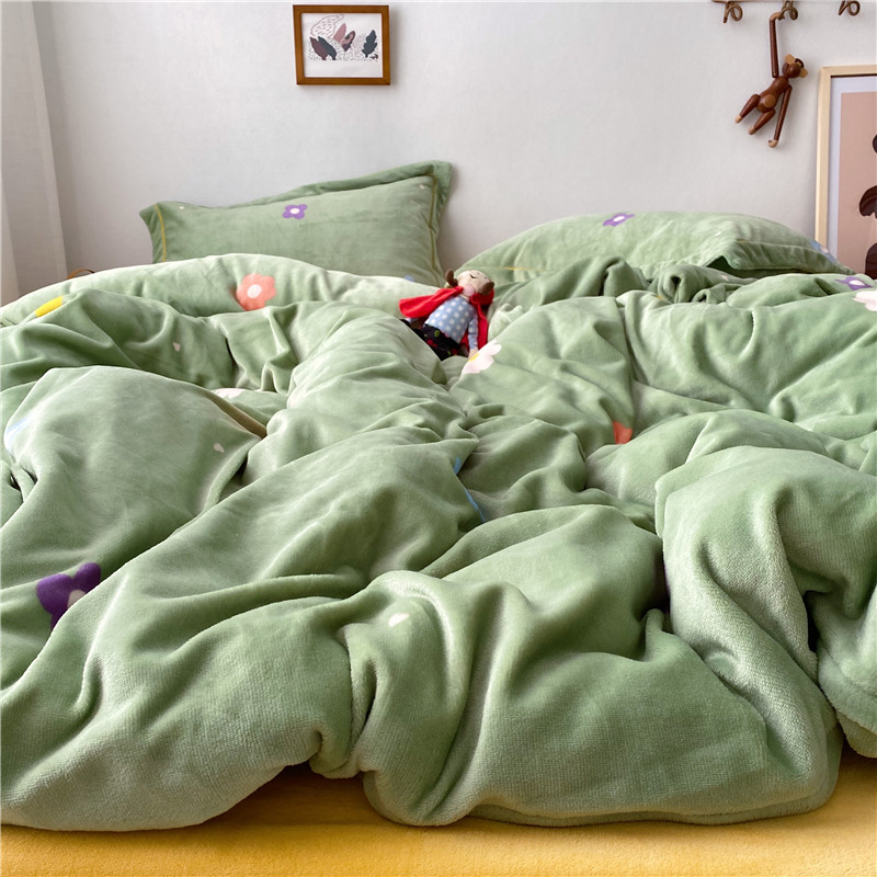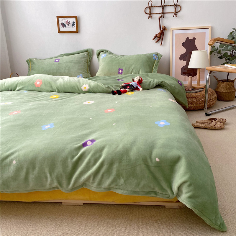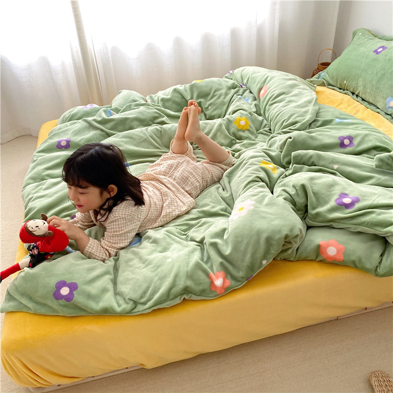 商品名称:时年 2019牛奶绒印花保暖四件套童模图 小花花绿