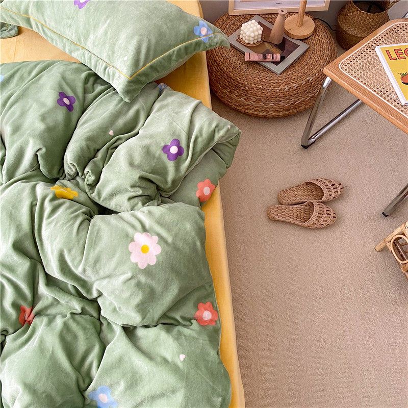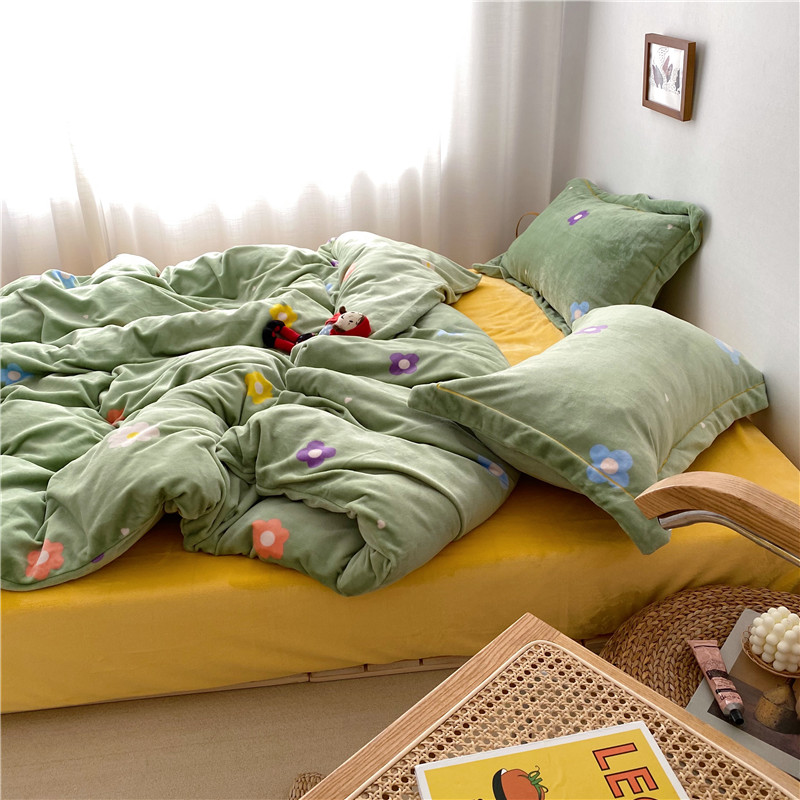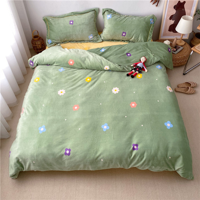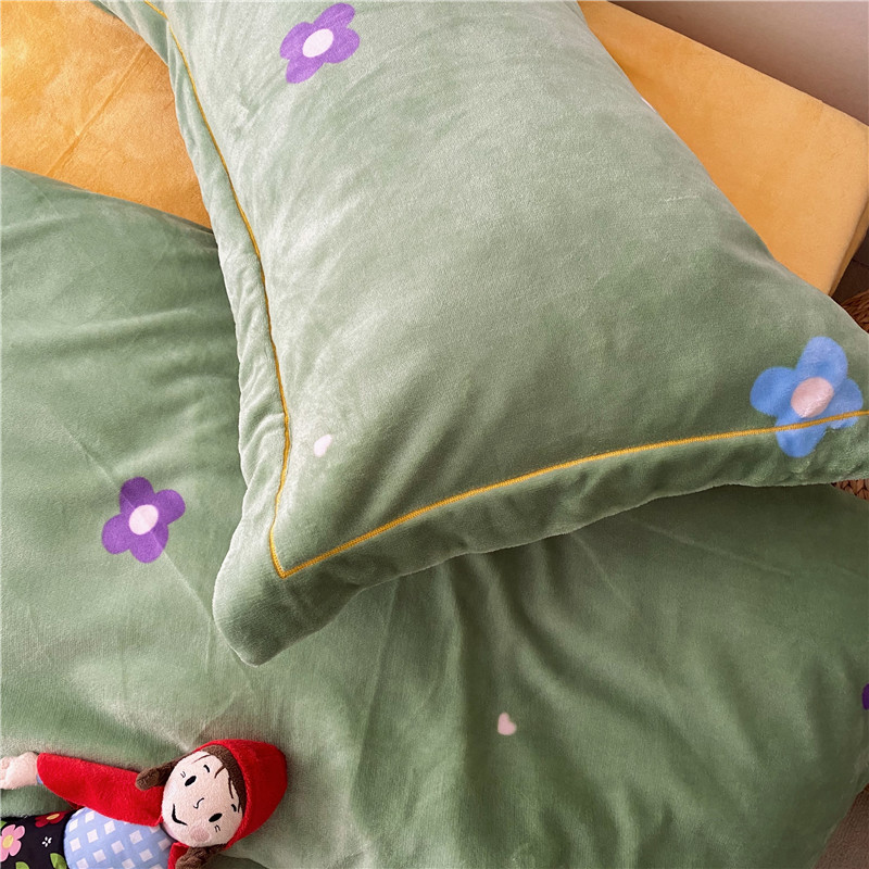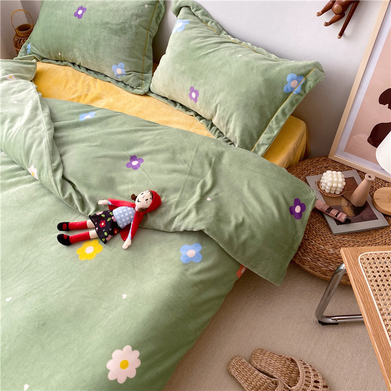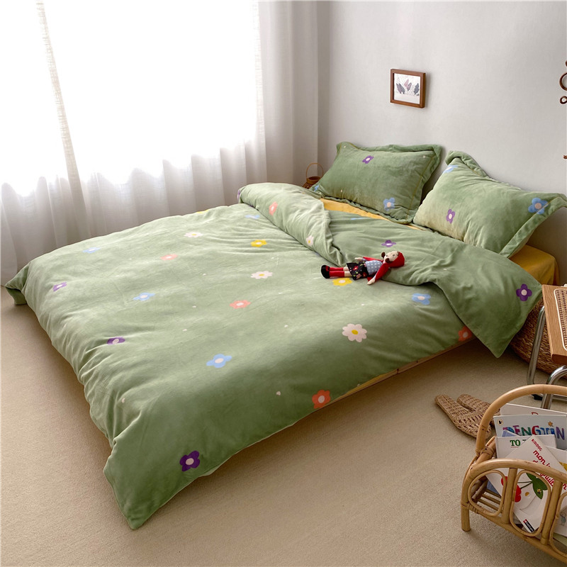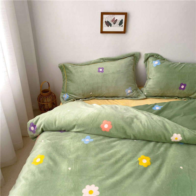 商品名称:时年 2019牛奶绒印花保暖四件套童模图 小花花绿