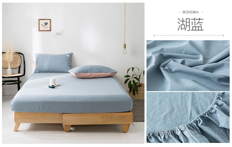 蓝巢家纺 2020年春夏新品全棉加厚水洗棉单品床笠 湖蓝