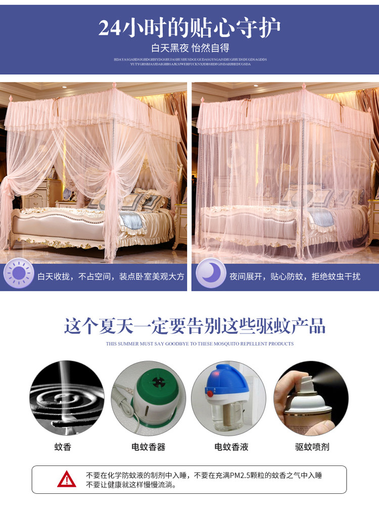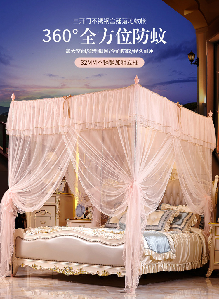 (总)海虹蚊帐 2025新款2503款一体防尘顶落地宫廷蚊帐,白色,米黄,浅蓝,玉色
