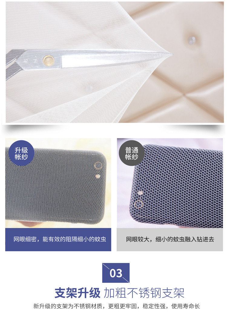 (总)海虹蚊帐 2025新款2502款外穿三开U型门一体防尘顶加密帐纱床笠款防摔坐床蚊帐,白色,淡蓝,浅米