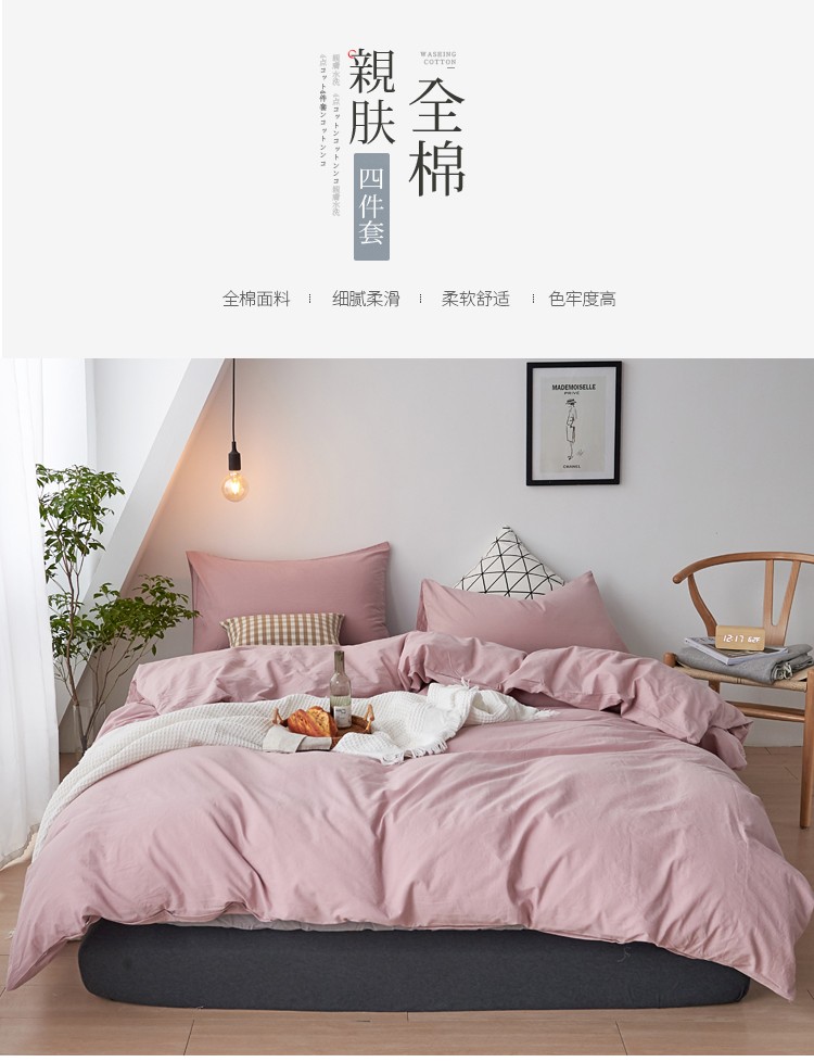 新品纯色全棉水洗棉床笠四件套纯棉学生三件套宿舍床单被套床笠款