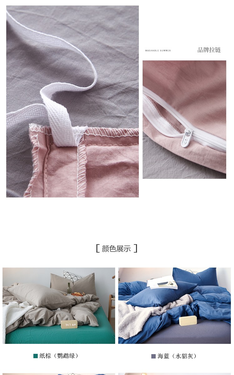 北欧风ins纯棉水洗棉床四件套全棉简约被套床单上三件套床笠,白色+藏青,藏青+浅蓝,鹅黄+螺旋藻绿,鹅黄+牛油果,螺旋藻绿+鹅黄,千夏紫+水貂灰,千夏紫+薇薇紫,薇薇紫+浅灰,浅蓝+鹅黄,浅蓝+白色,浅蓝+藏青