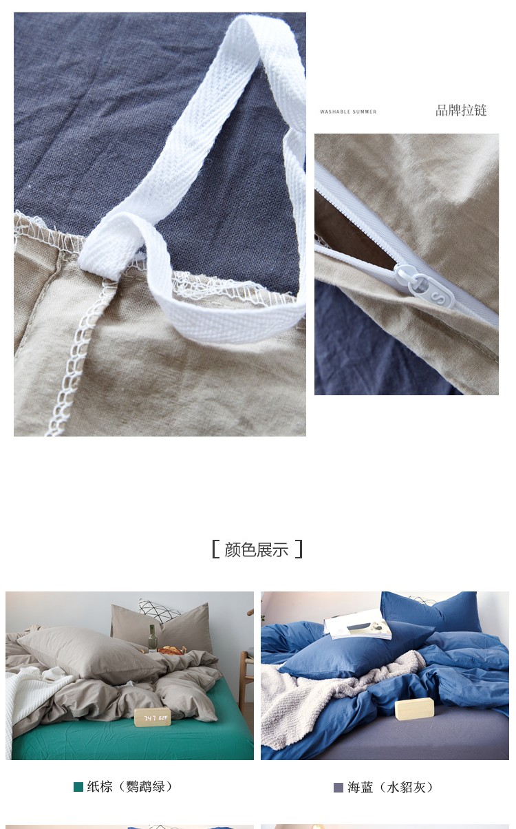 北欧风ins纯棉水洗棉床四件套全棉简约被套床单上三件套床笠,白色+藏青,藏青+浅蓝,鹅黄+螺旋藻绿,鹅黄+牛油果,螺旋藻绿+鹅黄,千夏紫+水貂灰,千夏紫+薇薇紫,薇薇紫+浅灰,浅蓝+鹅黄,浅蓝+白色,浅蓝+藏青