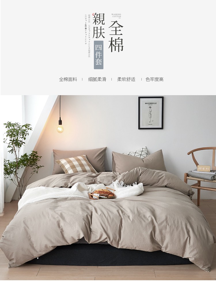 新品纯色全棉水洗棉四件套纯棉学生三件套宿舍床单被套床笠款