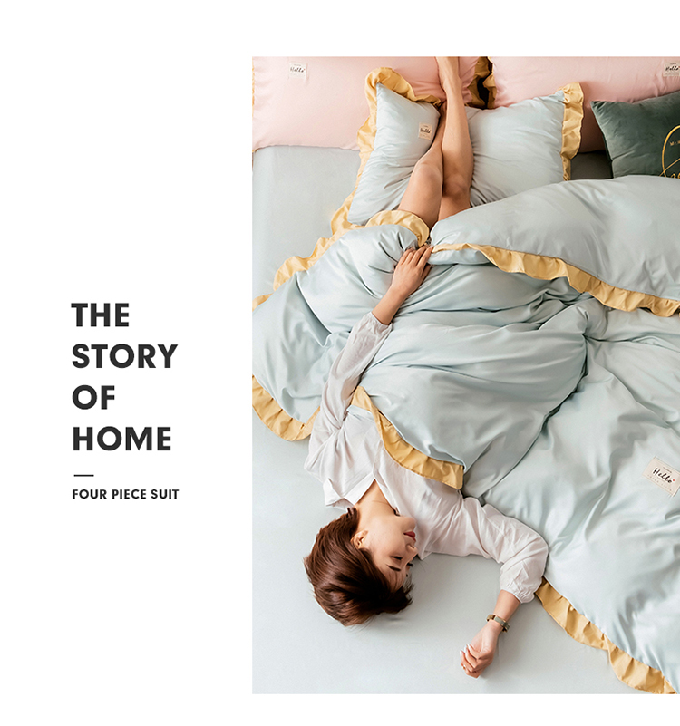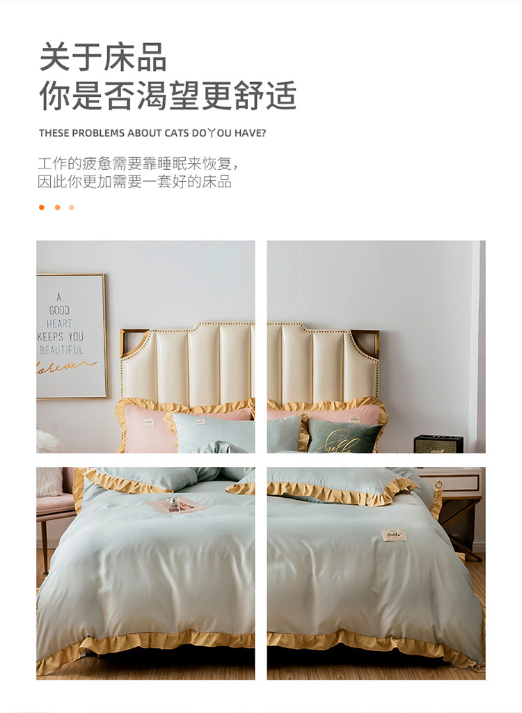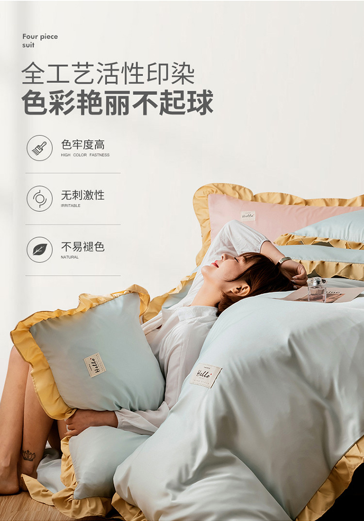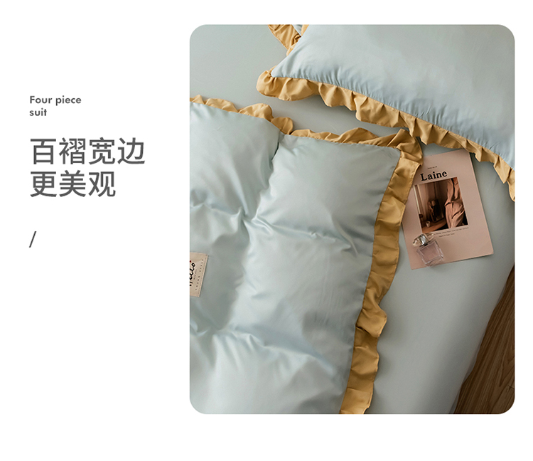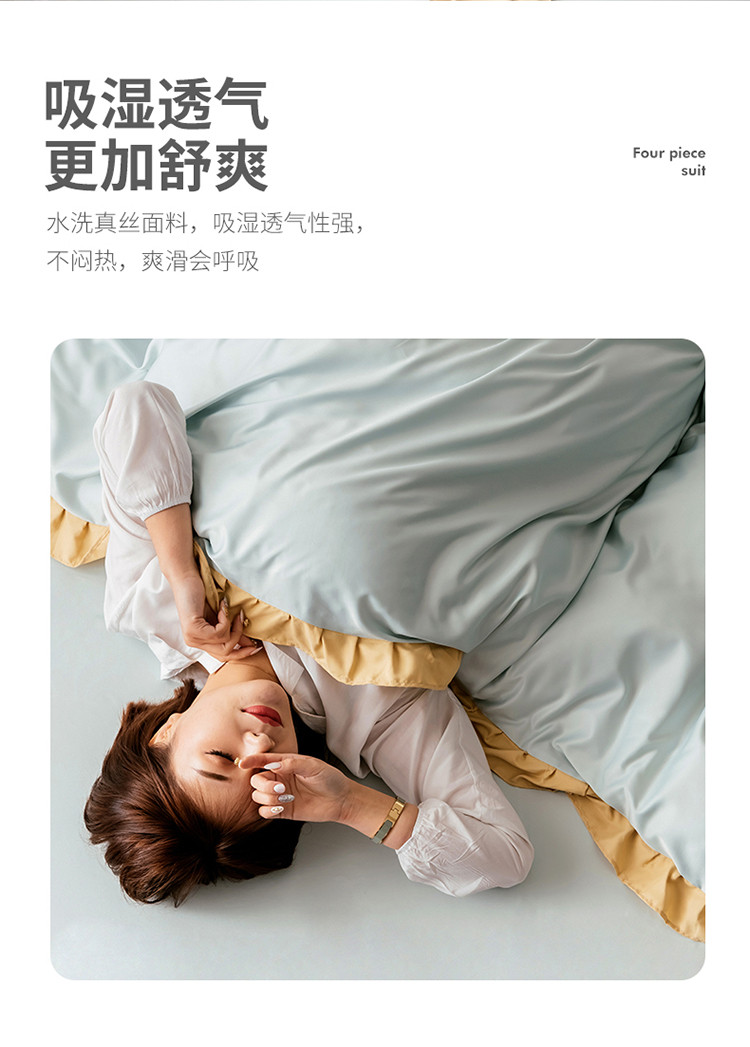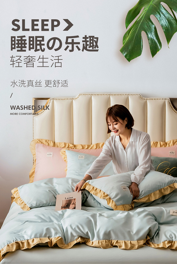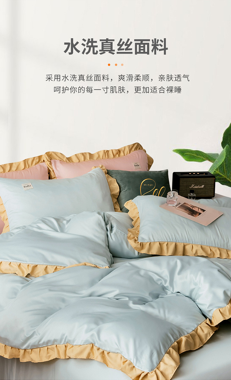 商品名称:芃成 2020新款水洗真丝库里南花边四件套 库里南-果绿