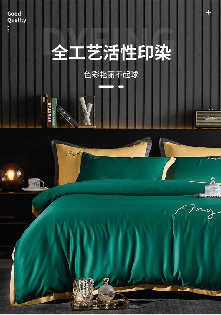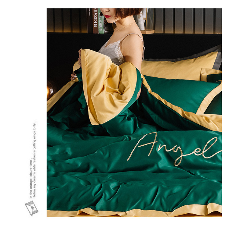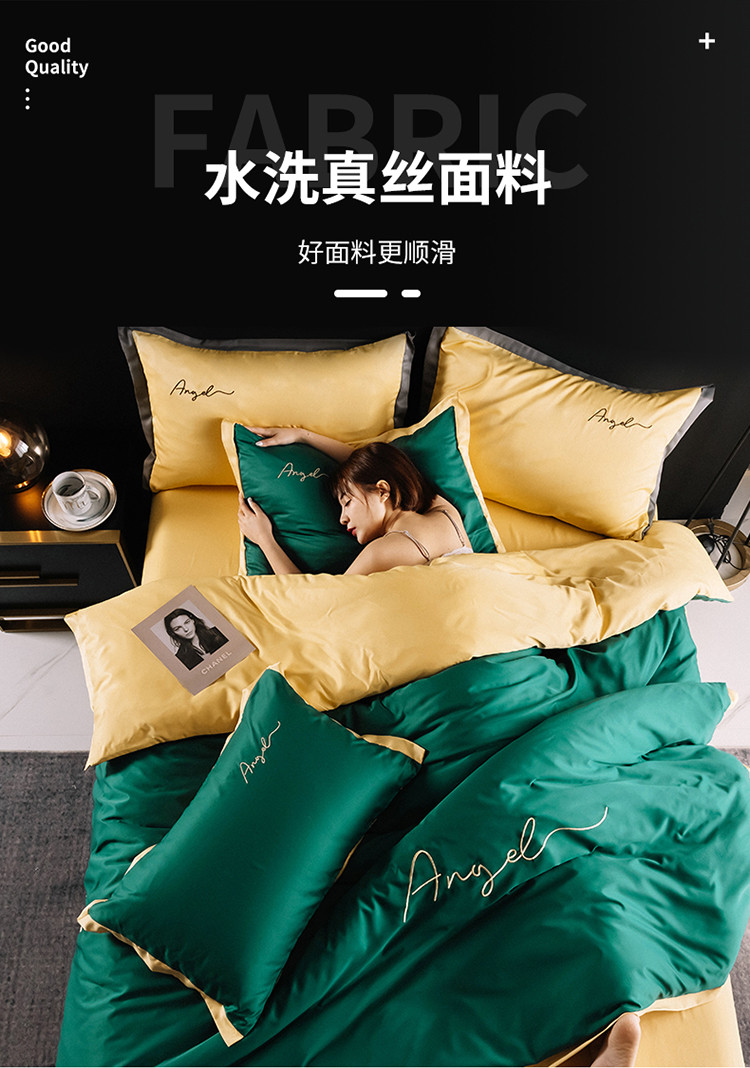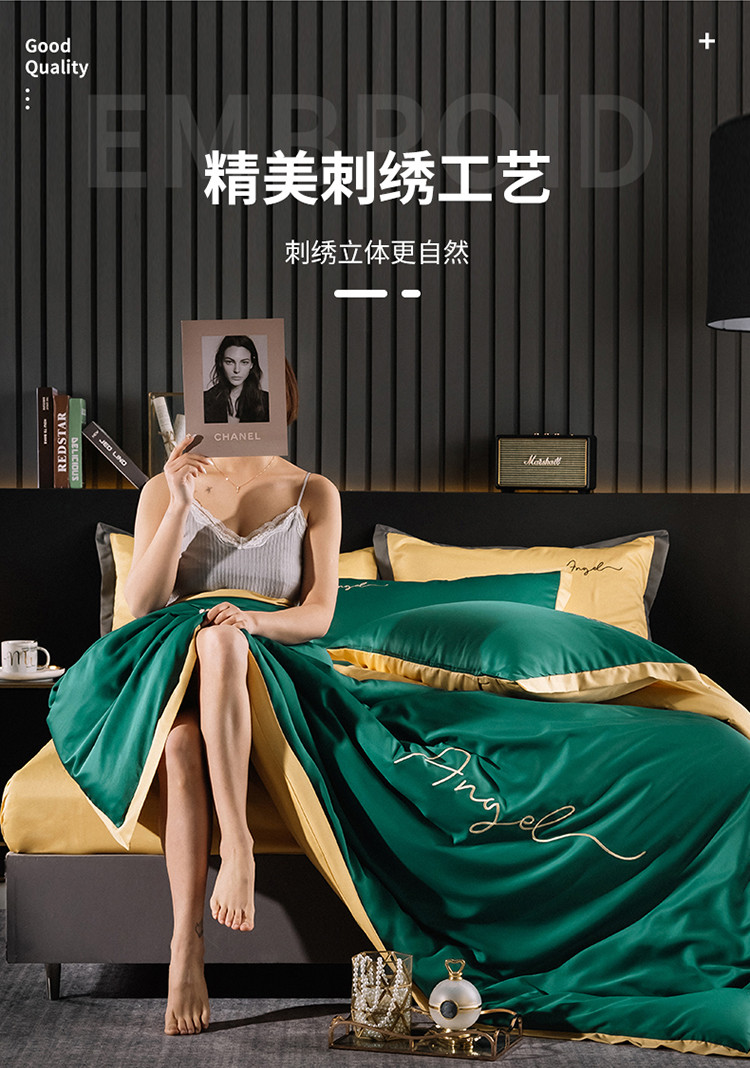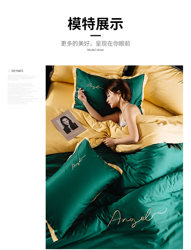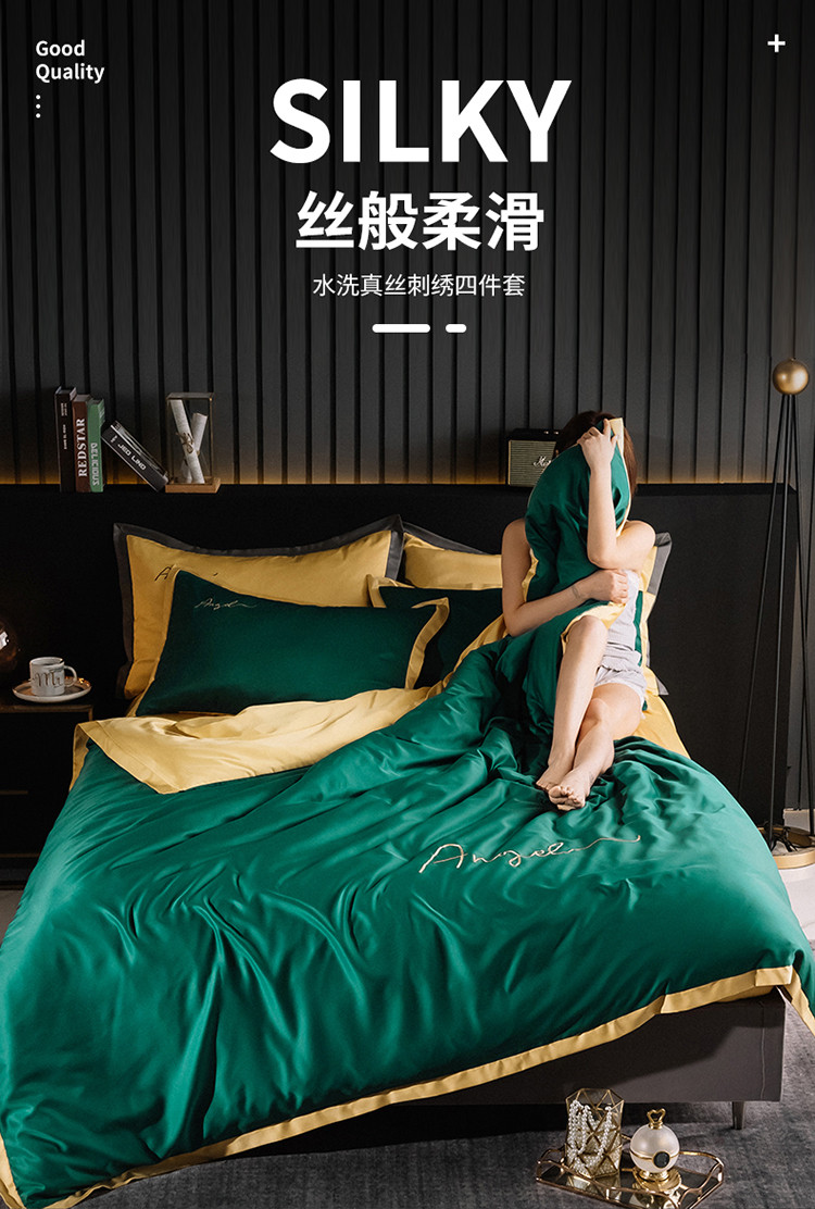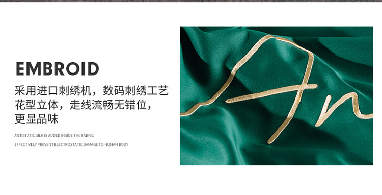 商品名称:芃成 2020新款水洗真丝天使宽边绣花四件套 天使-墨绿