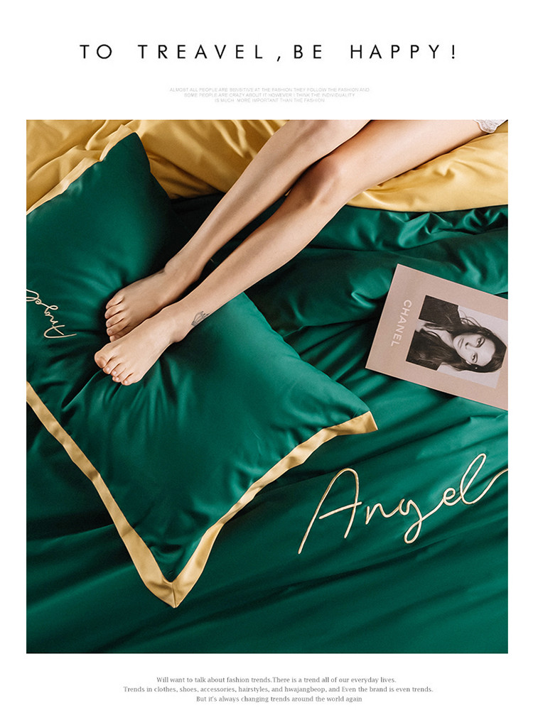 芃成 2020新款水洗真丝天使宽边绣花四件套 天使-墨绿