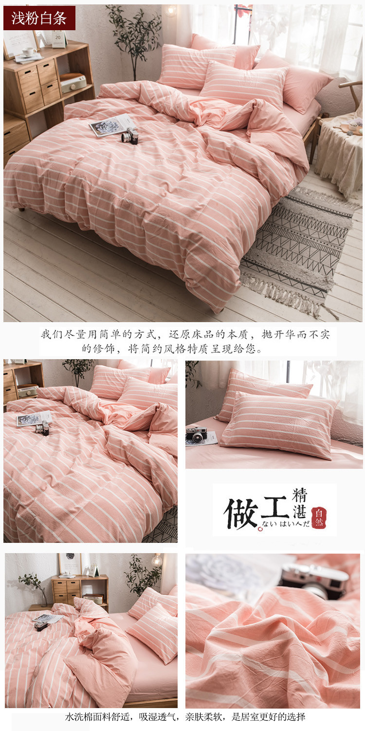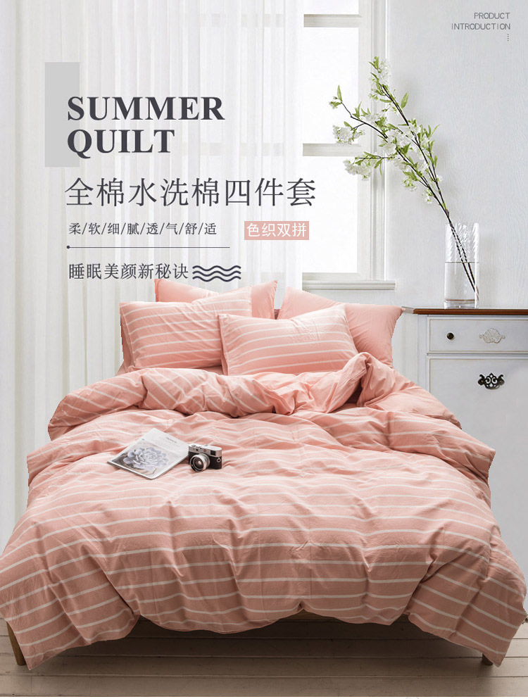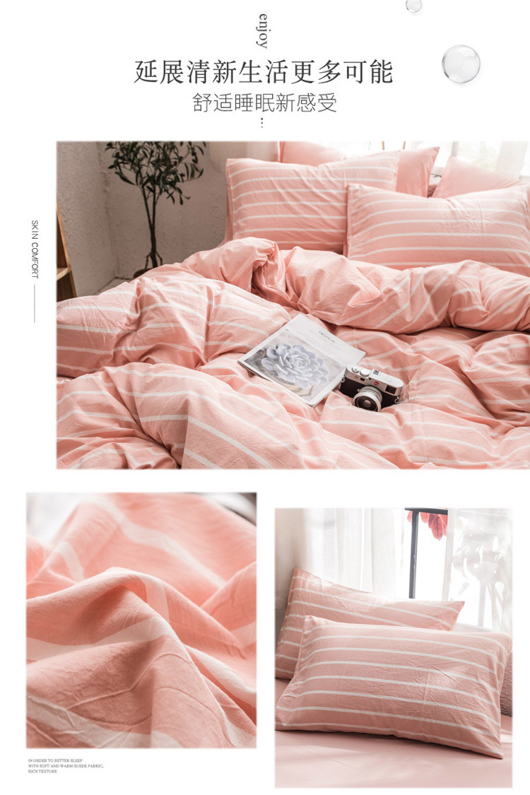 当前位置: 91家纺网 > 商品网购 > 床品套件 > 四件套 > 色织四件套 > 佳梦达 2020新款色织全棉水洗双拼四件套 浅粉白条