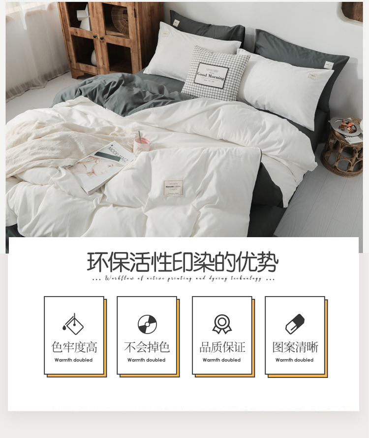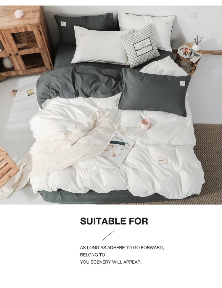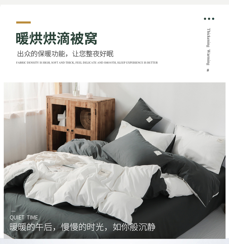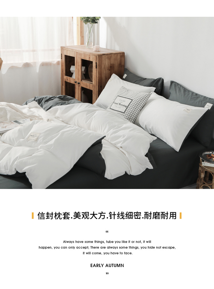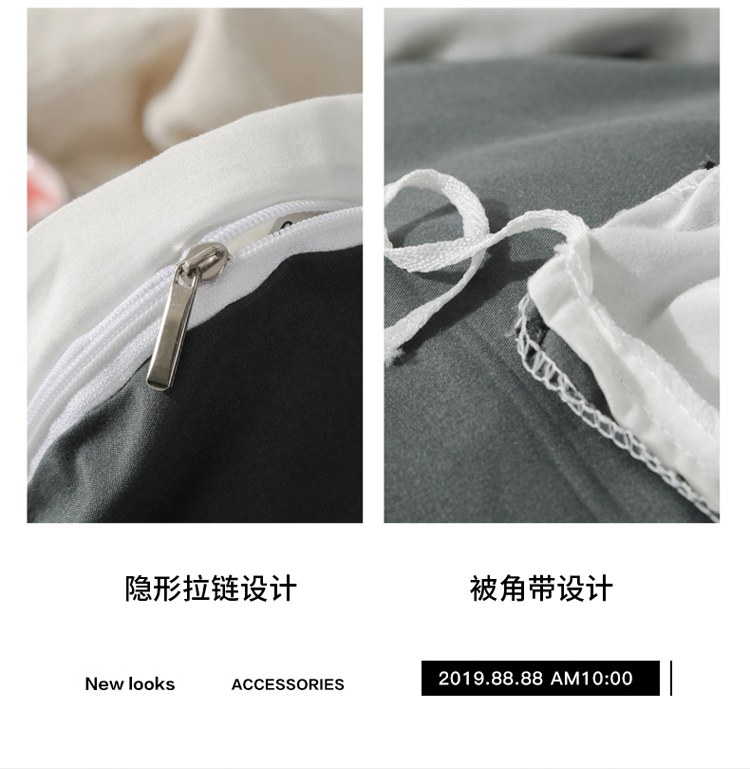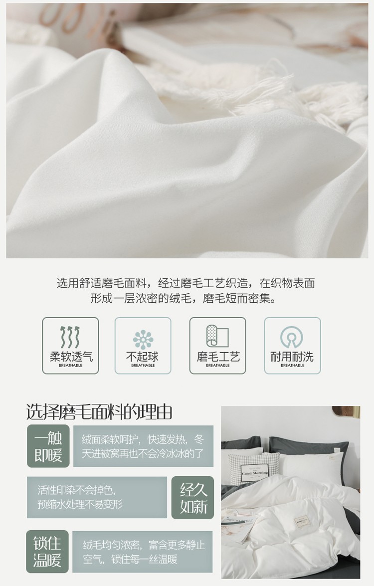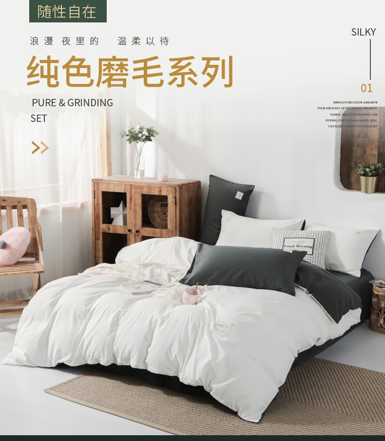 商品名称:米粒 2020新款纯色磨毛四件套 白+深灰