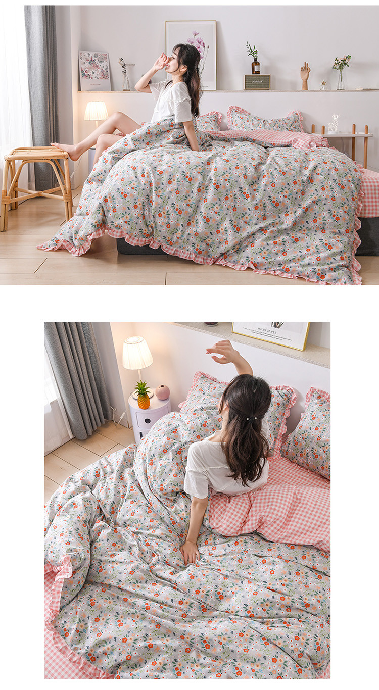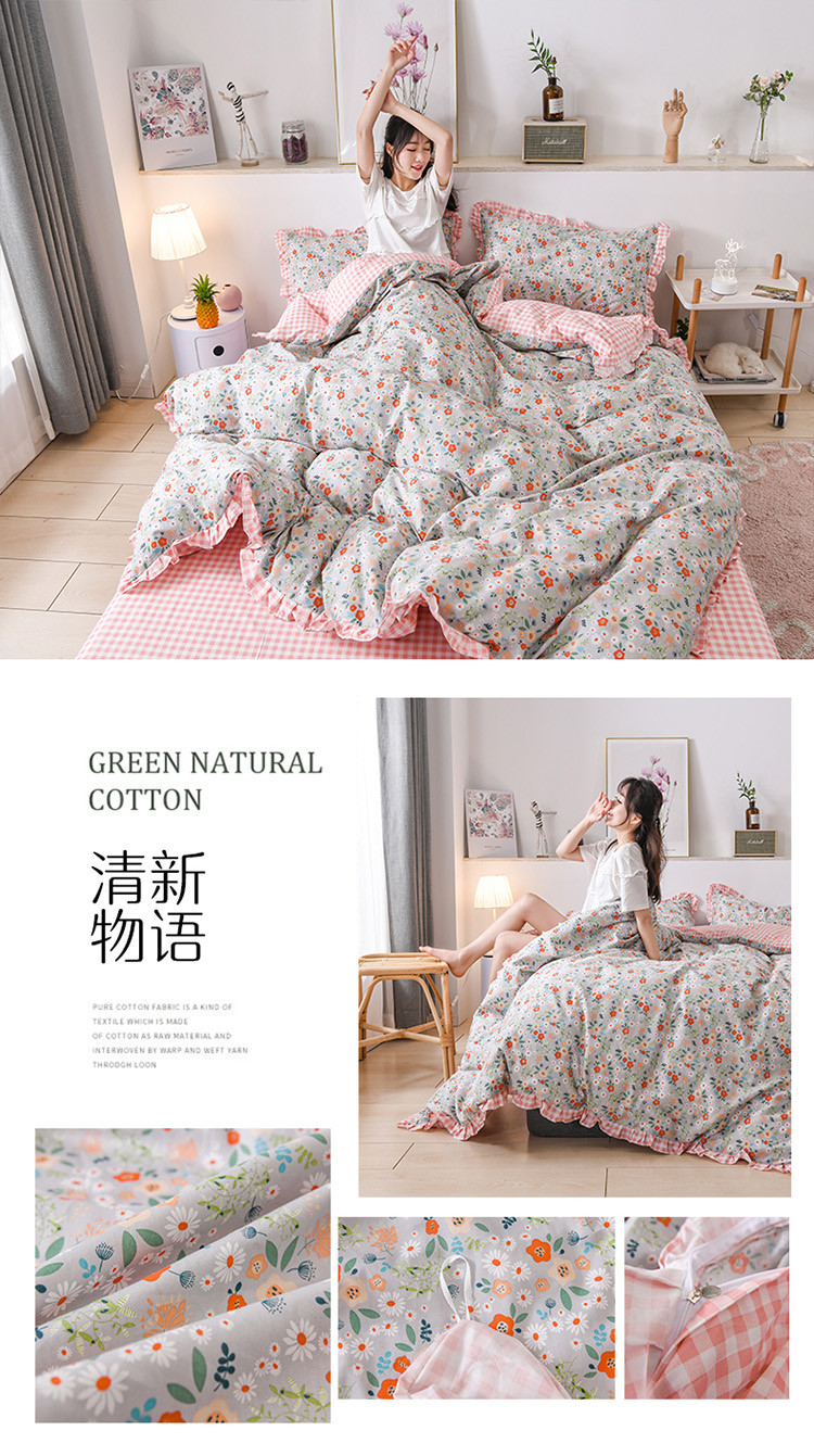 金麦家纺 2020新款清新小碎花全棉花边四件套 清新物语