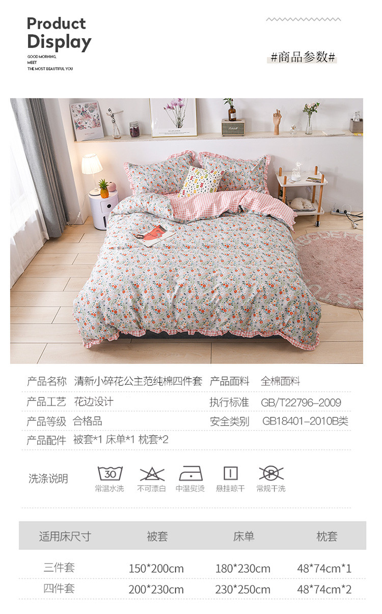 商品名称:金麦家纺 2020新款清新小碎花全棉花边四件套 清新物语