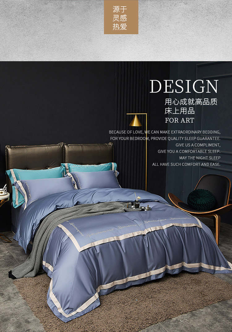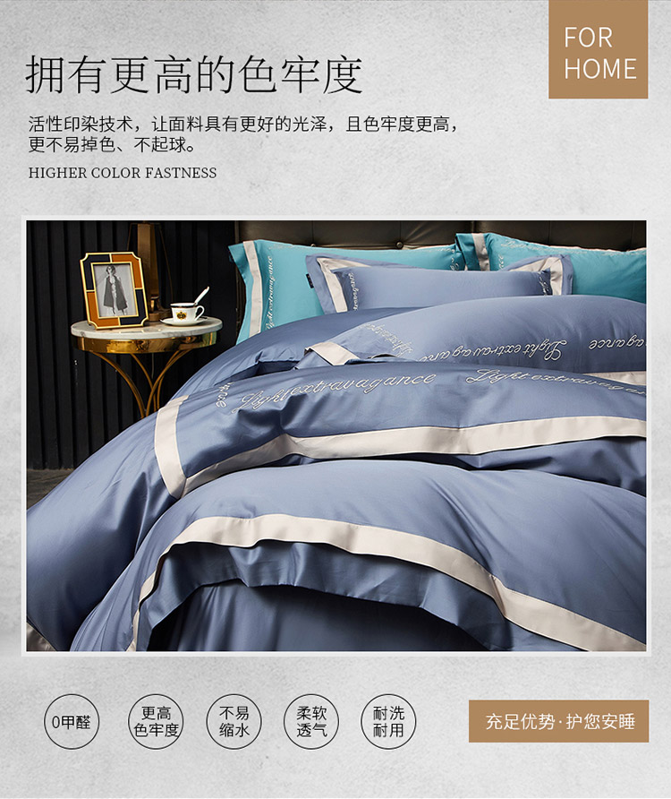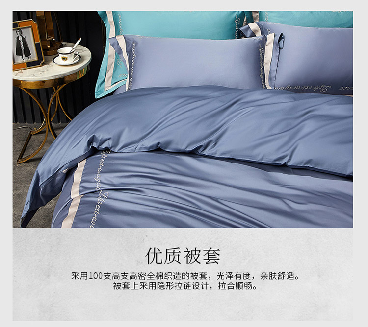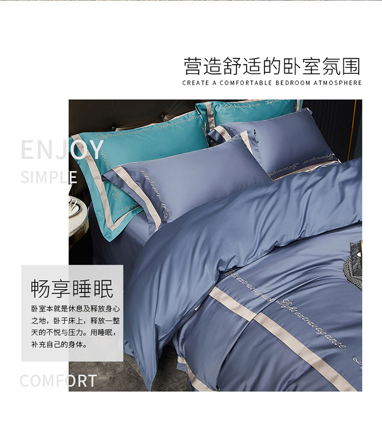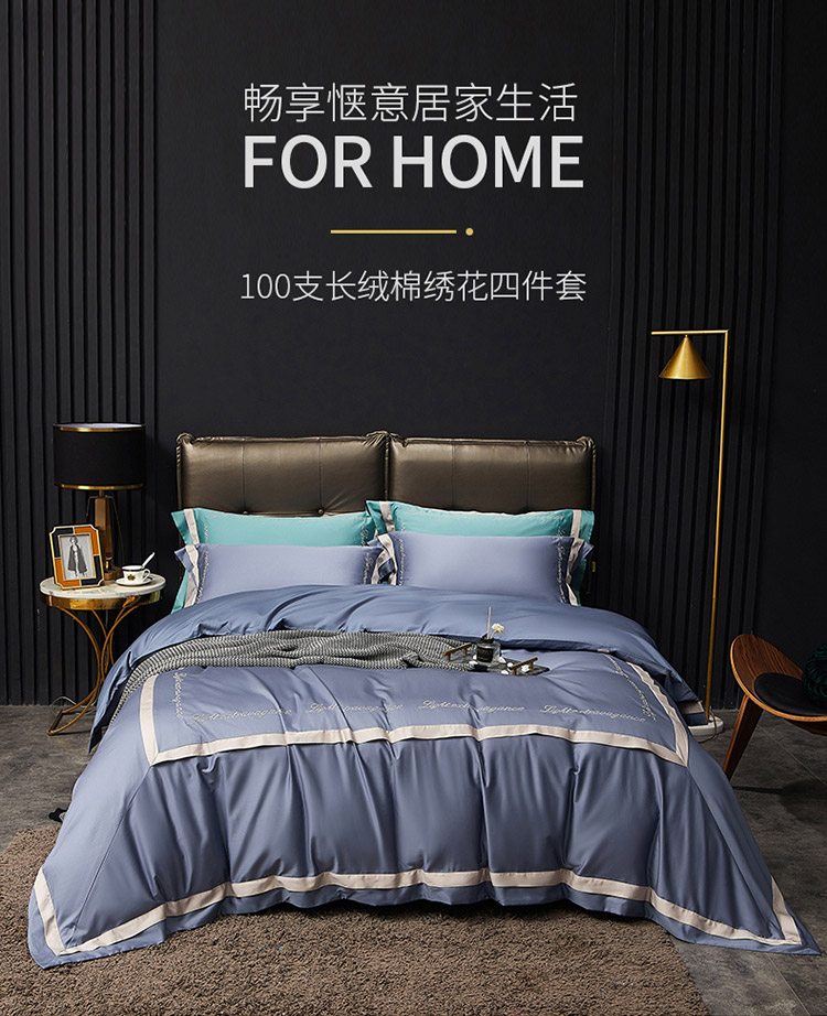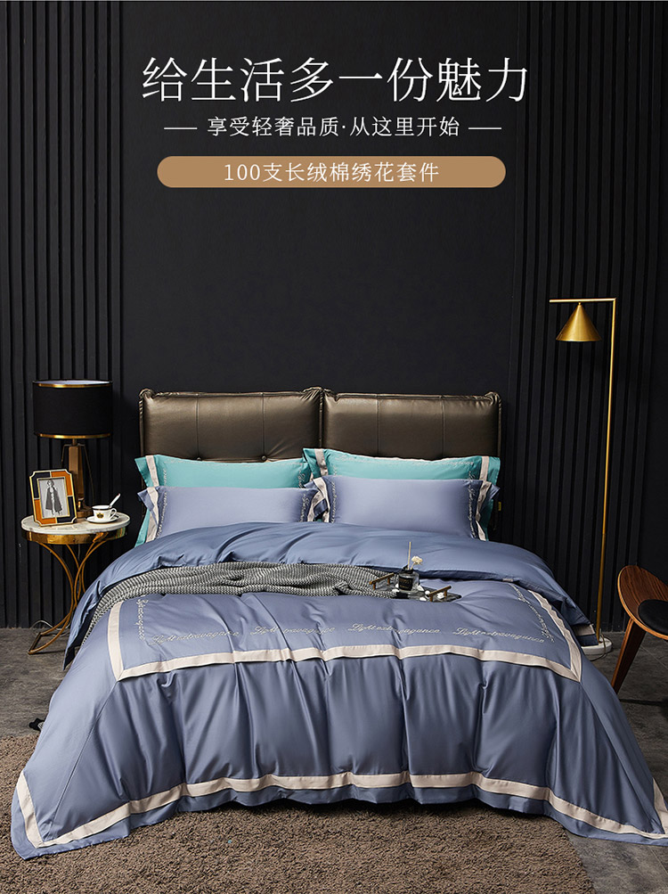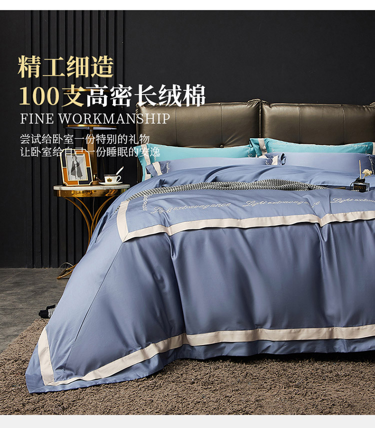 商品名称:爱缦 2020新款100支长绒棉诺丽系列四件套 骑士蓝
