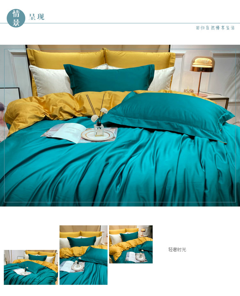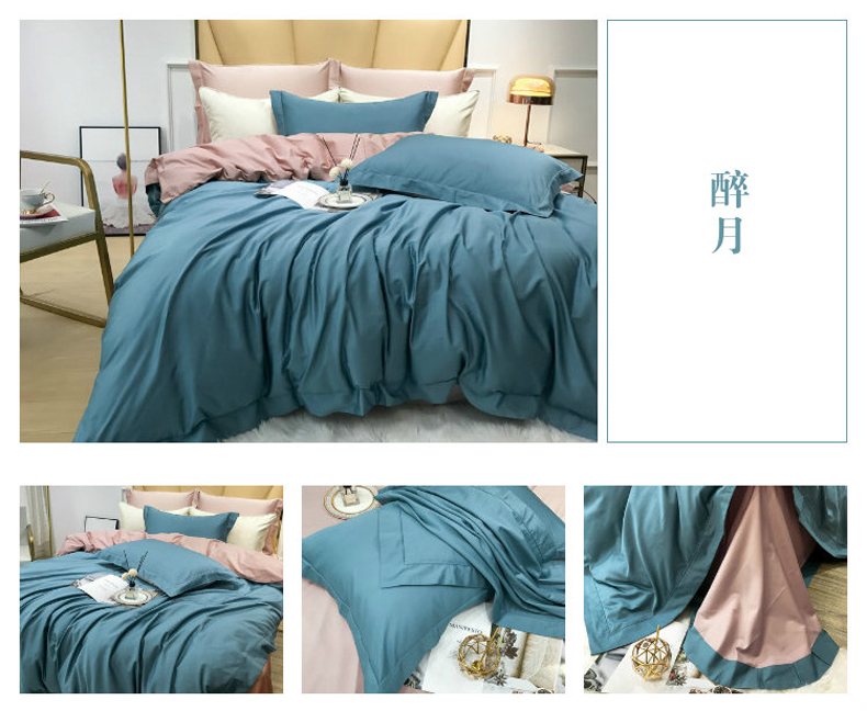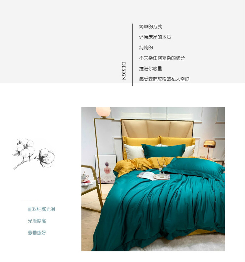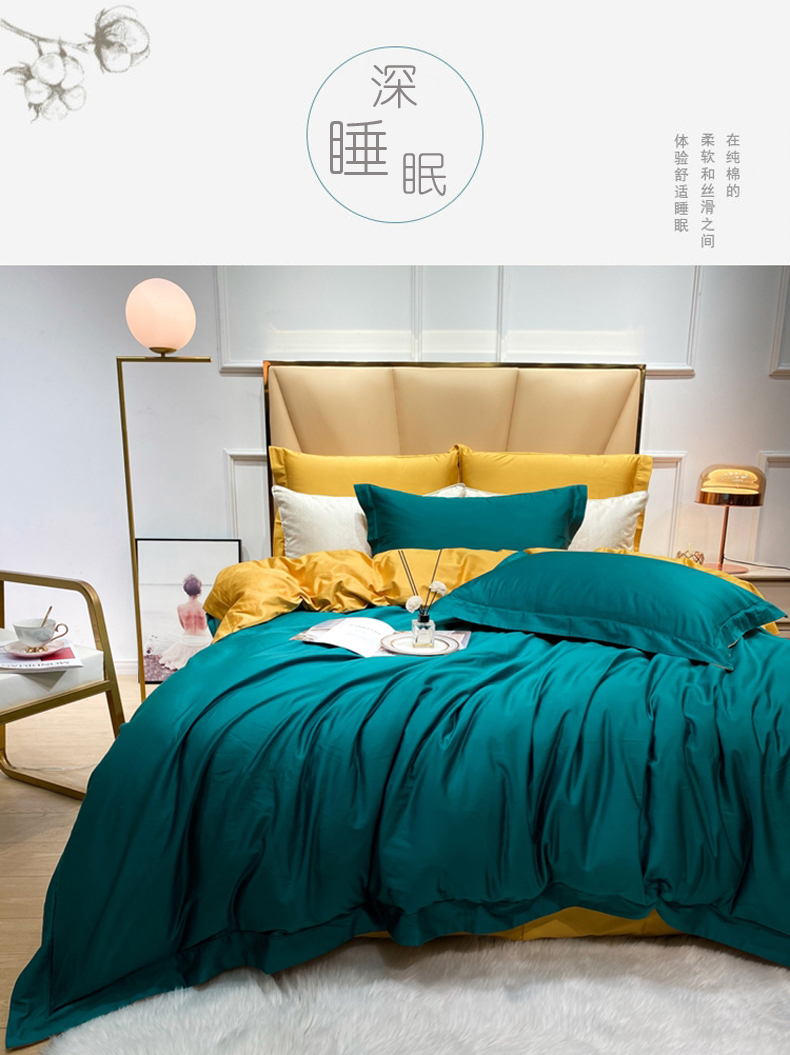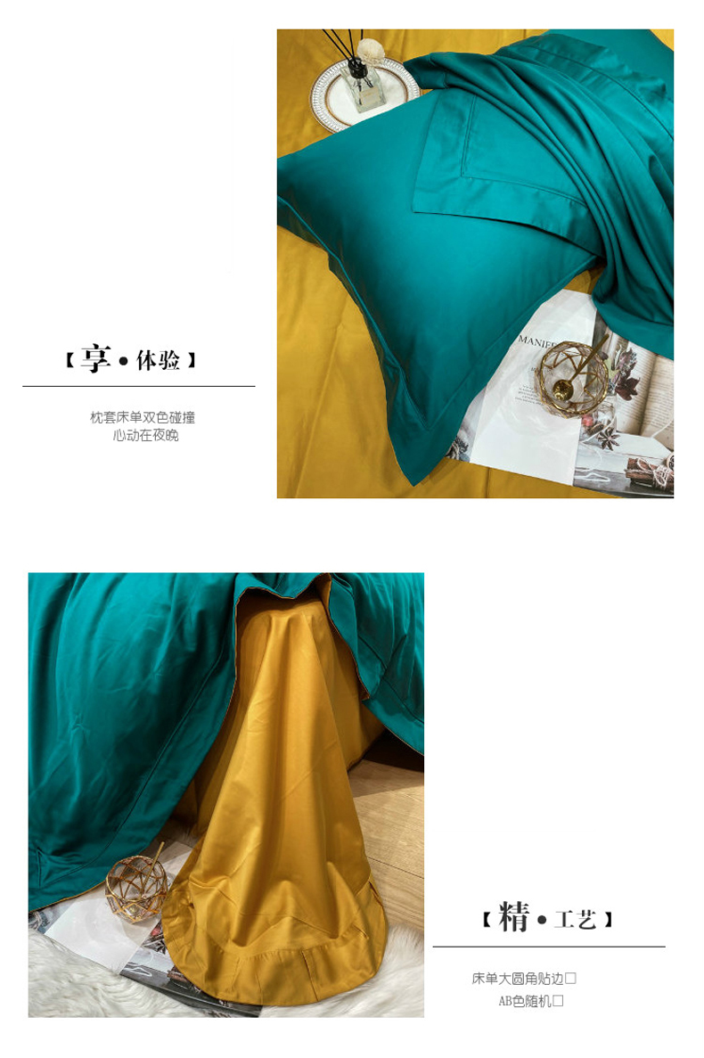 十九色家纺 新款50*50撞色长绒棉高端埋线款全棉四件套 清曲