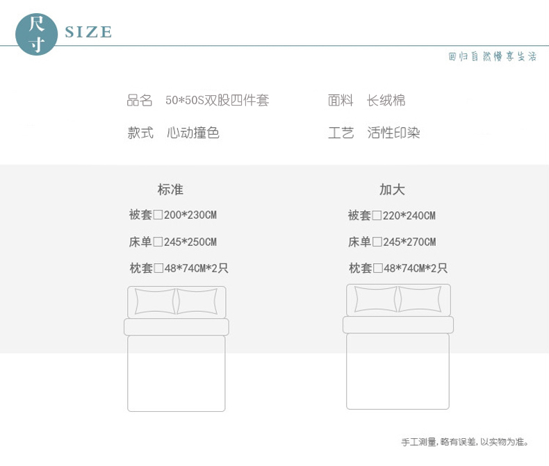 商品名称:十九色家纺 新款50*50撞色长绒棉高端埋线款全棉四件套 清曲