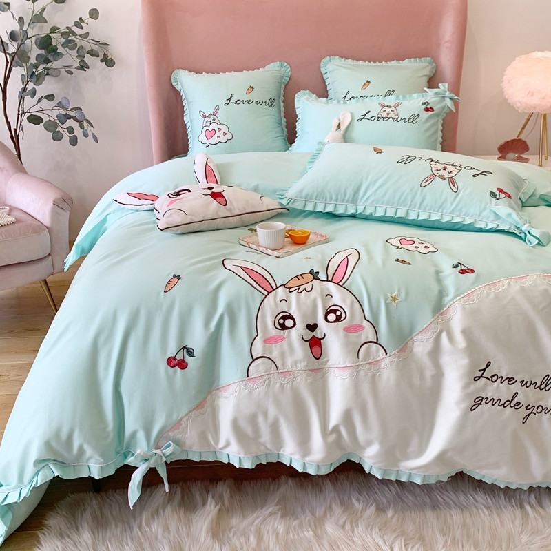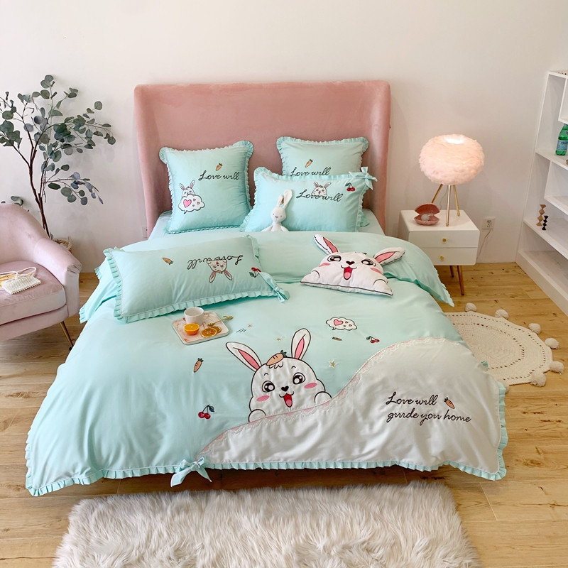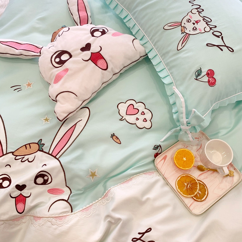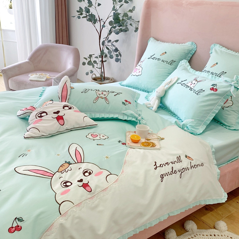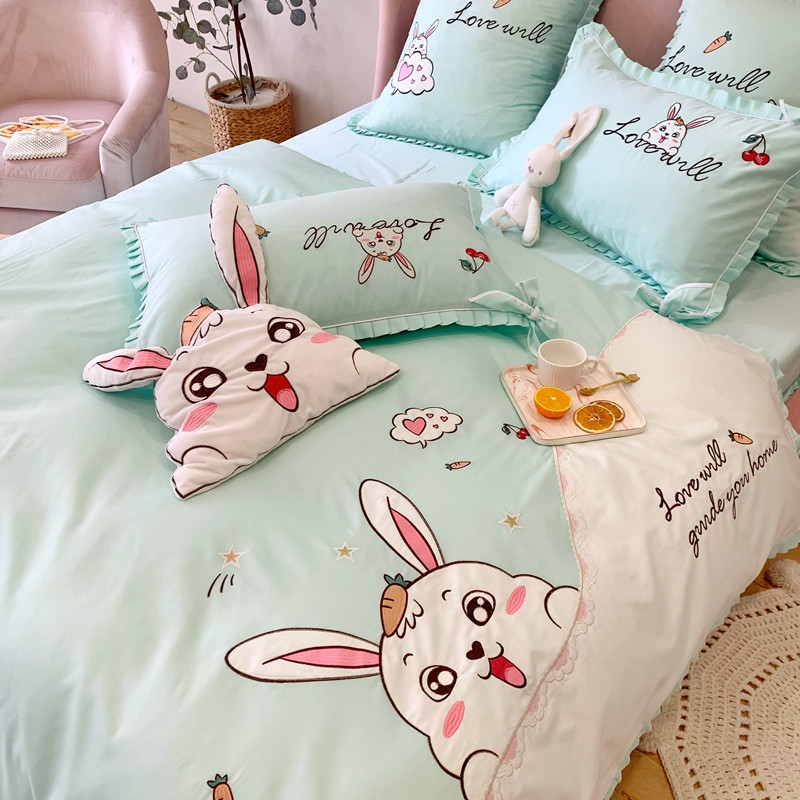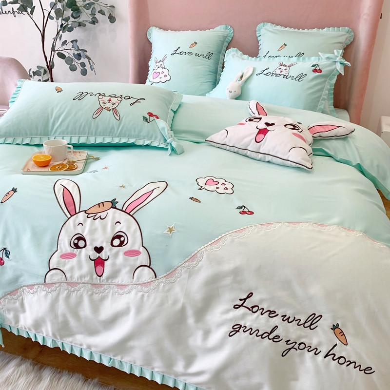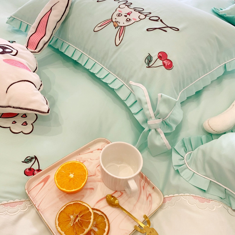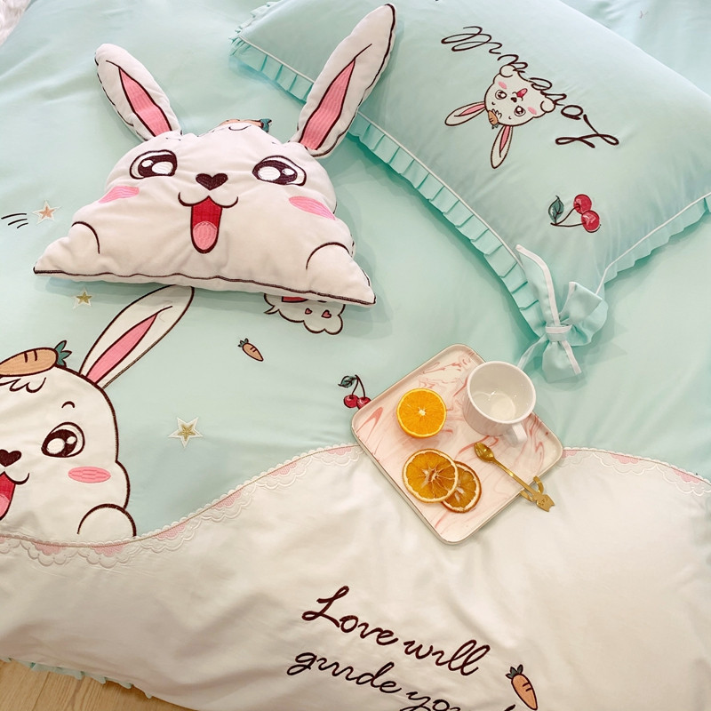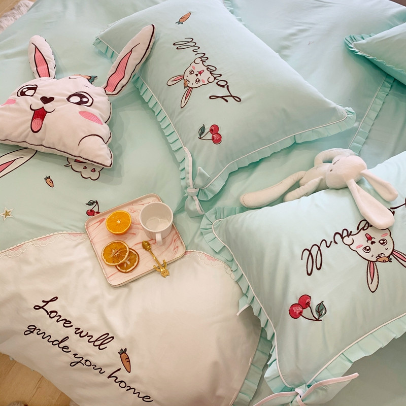 商品名称:馨蕊家居 2021新款60s双股埃及长绒棉四件套 玥宝兔绿