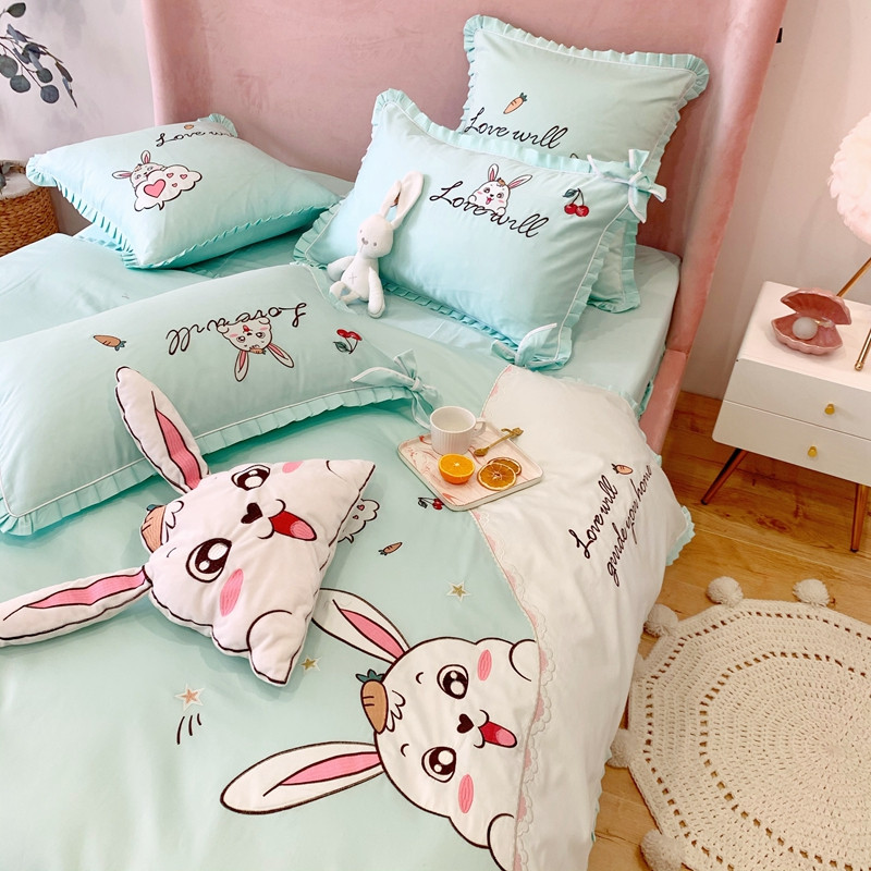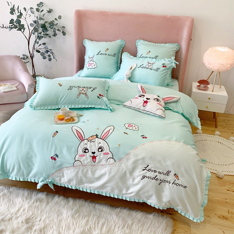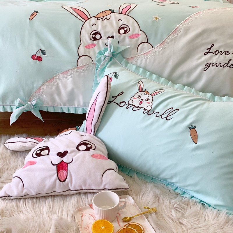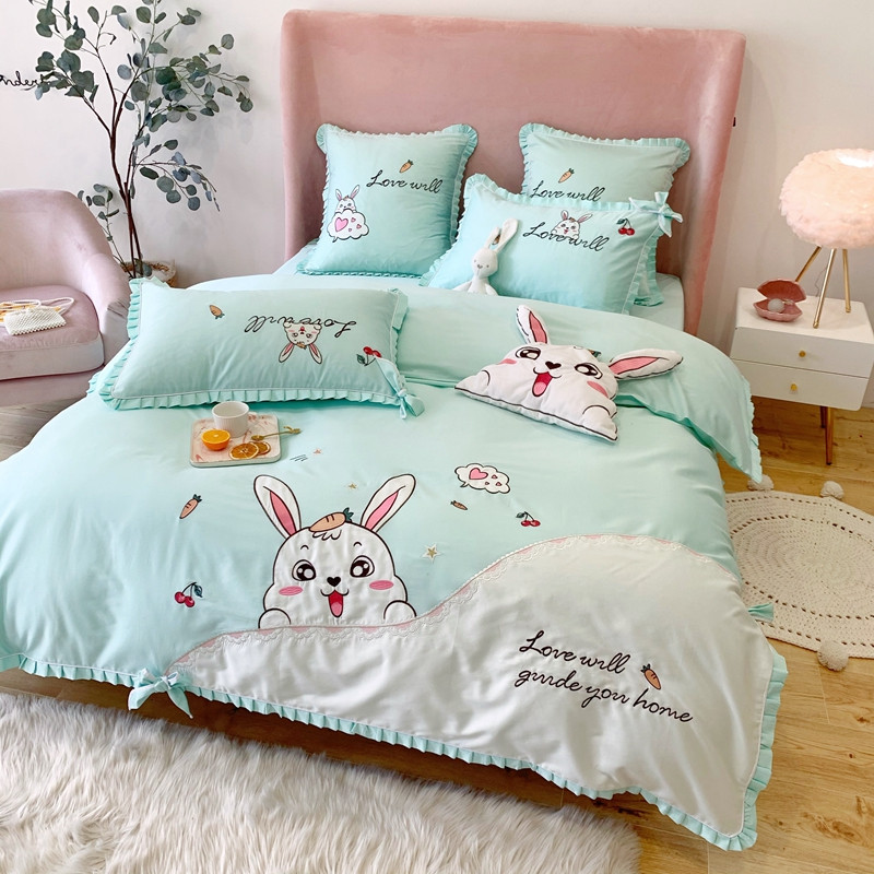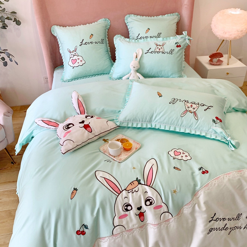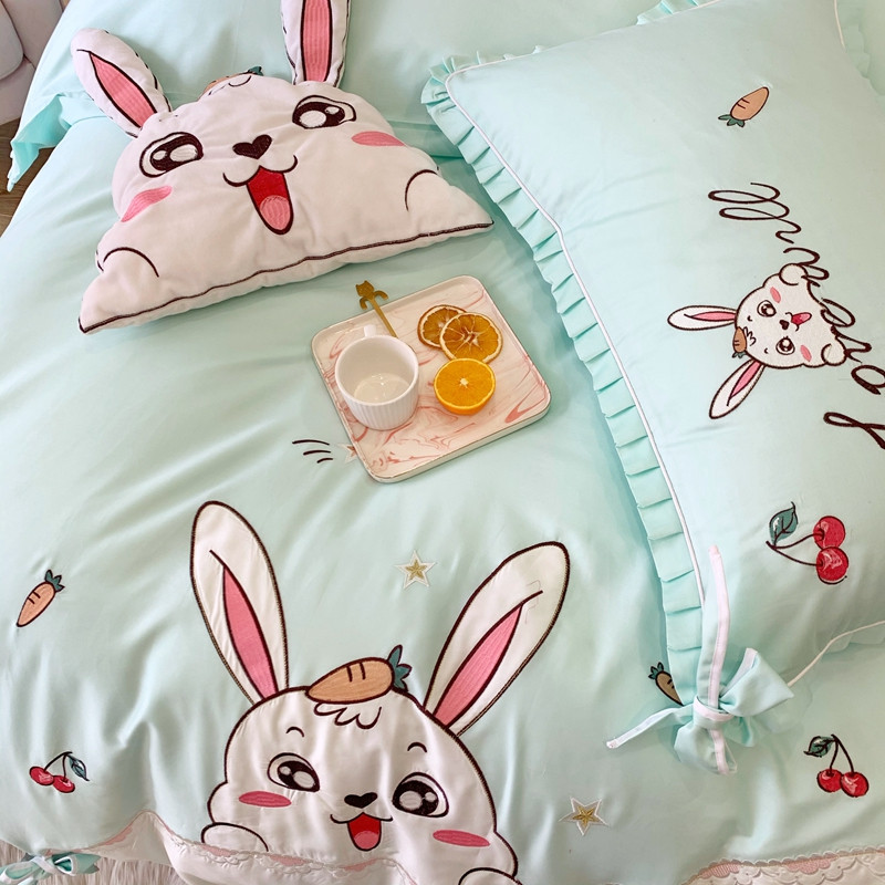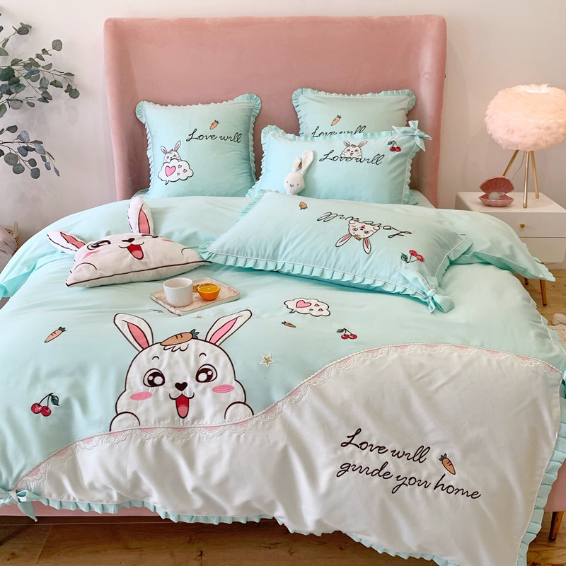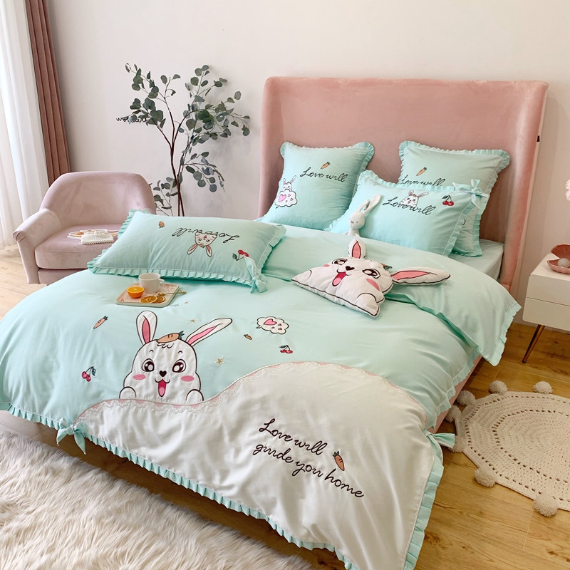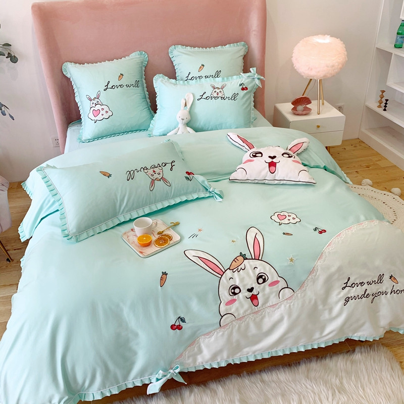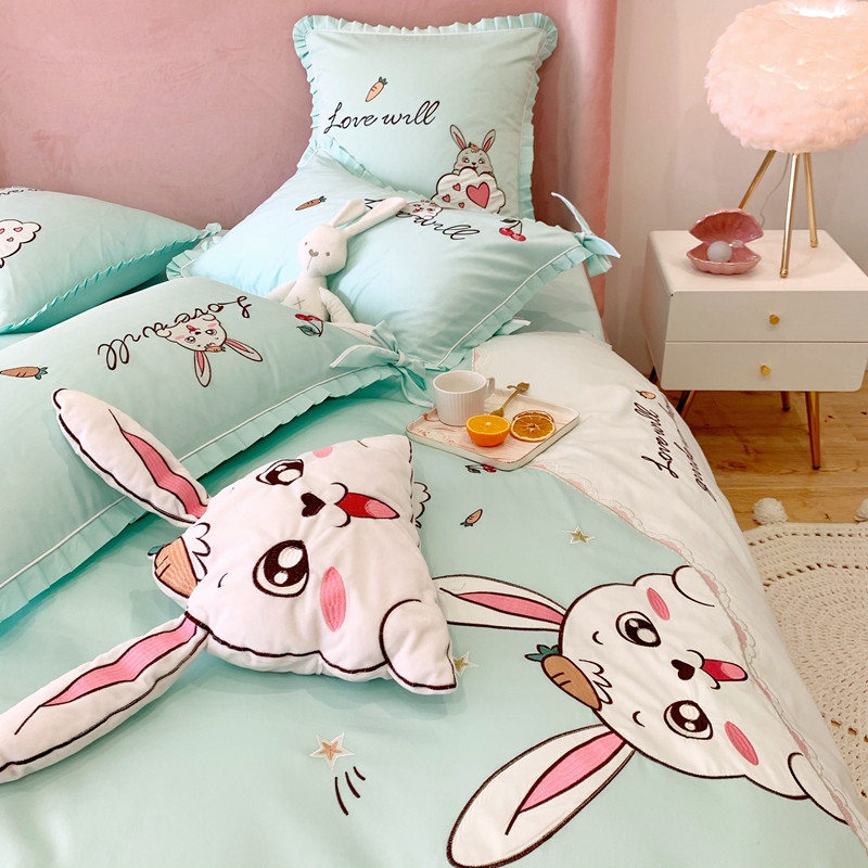商品名称:馨蕊家居 2021新款60s双股埃及长绒棉四件套 玥宝兔绿
