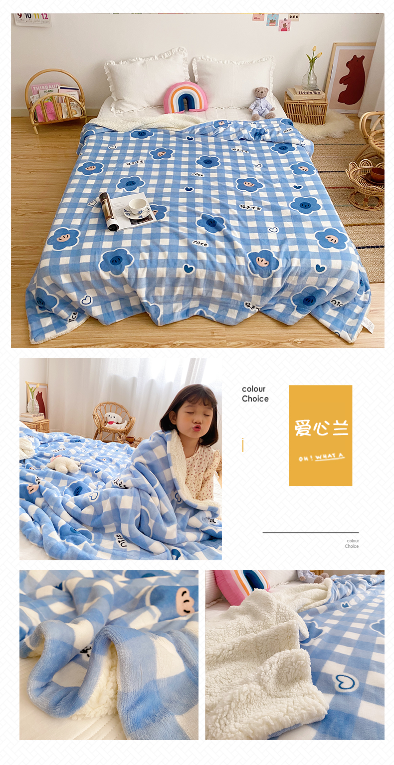 商品名称:川悦生活2020新款羊羔绒毯子卡通亲肤牛奶绒毛毯 爱心兰