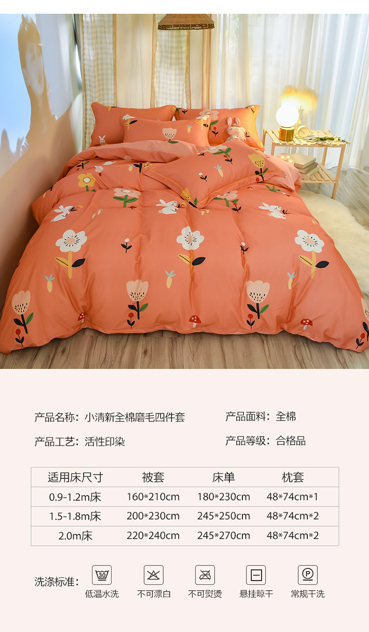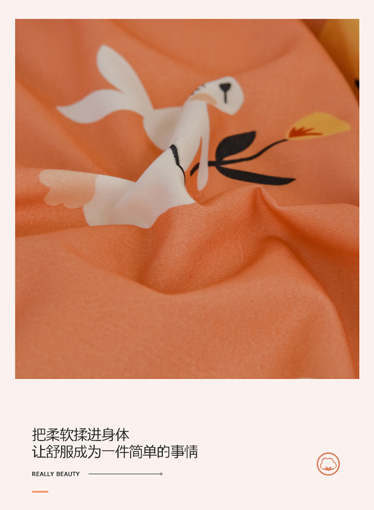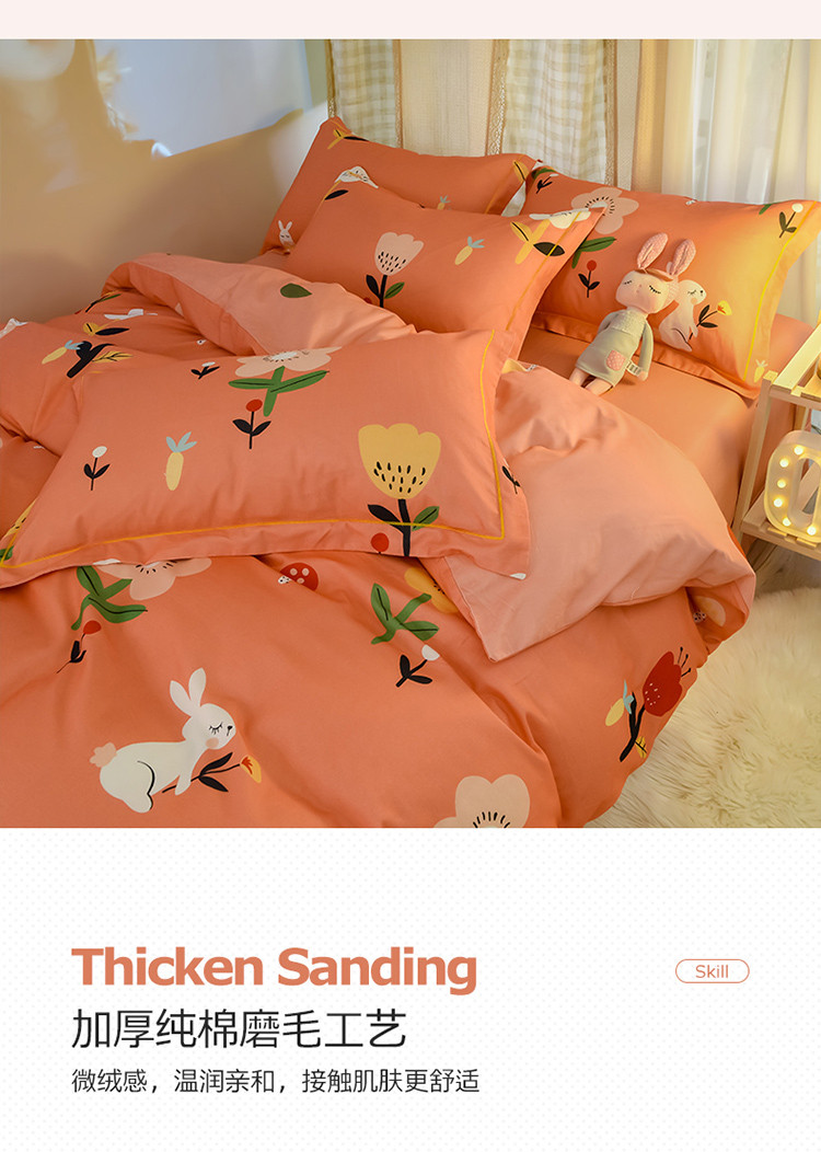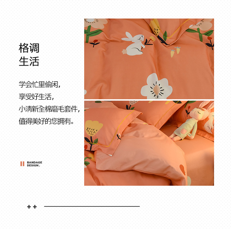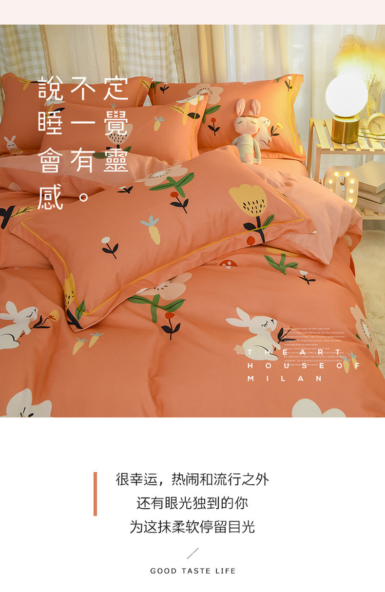 商品名称:雲归梦 2020新款小清新全棉生态磨毛四件套 田园兔-桔