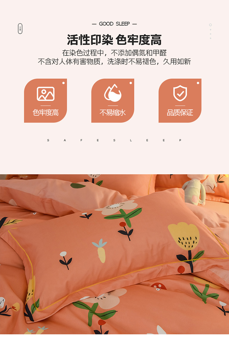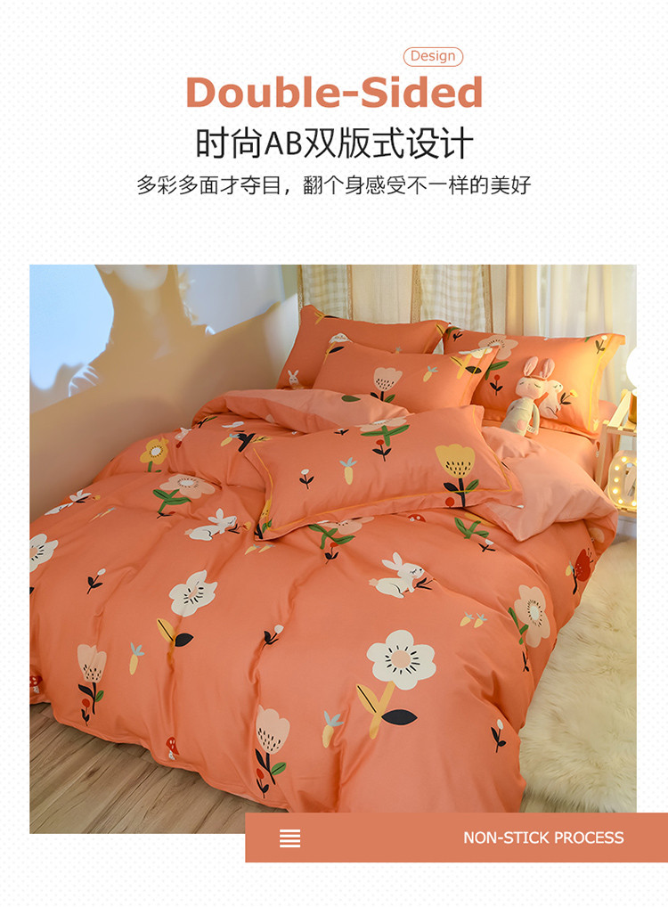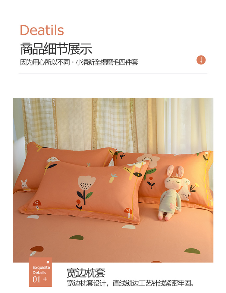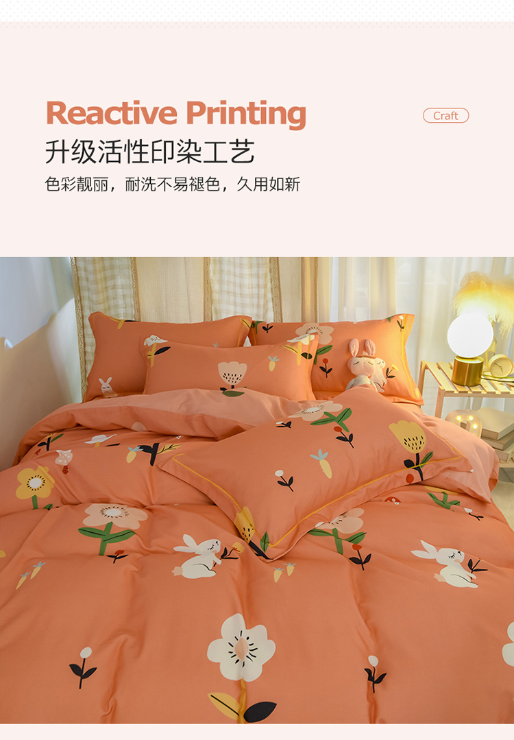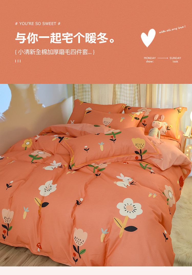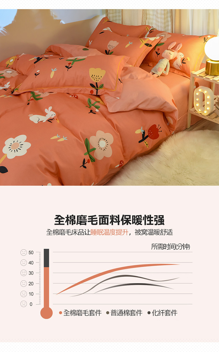商品名称:雲归梦 2020新款小清新全棉生态磨毛四件套 田园兔-桔