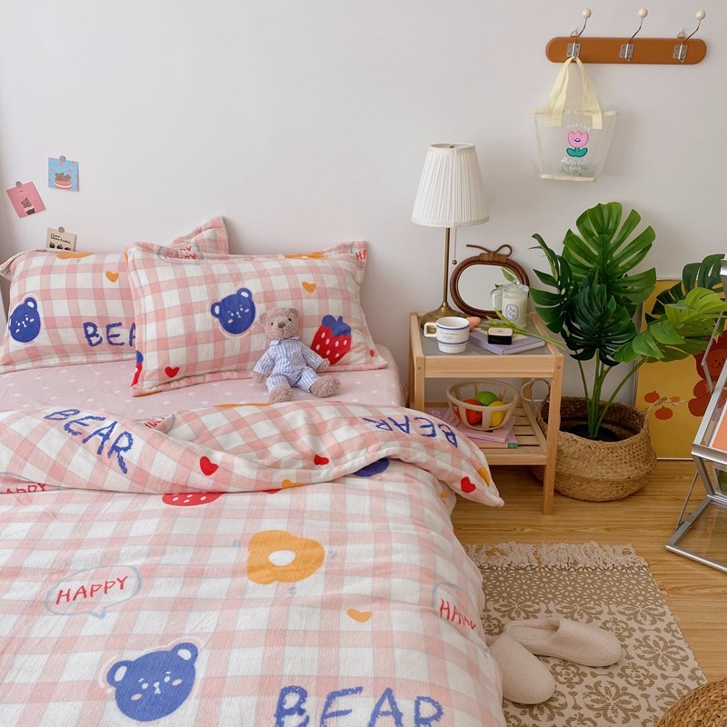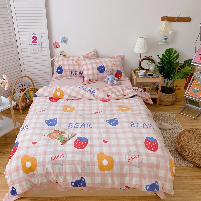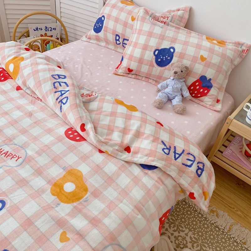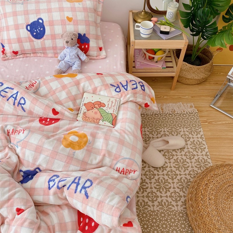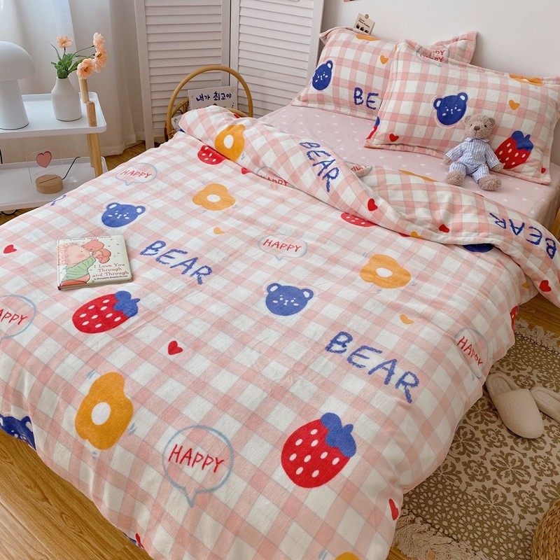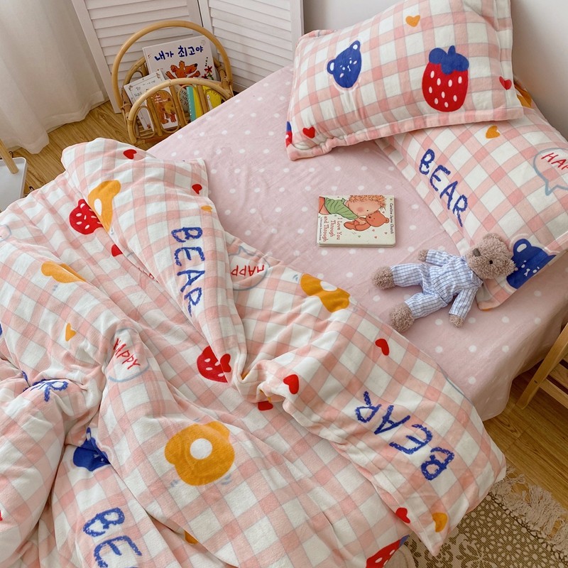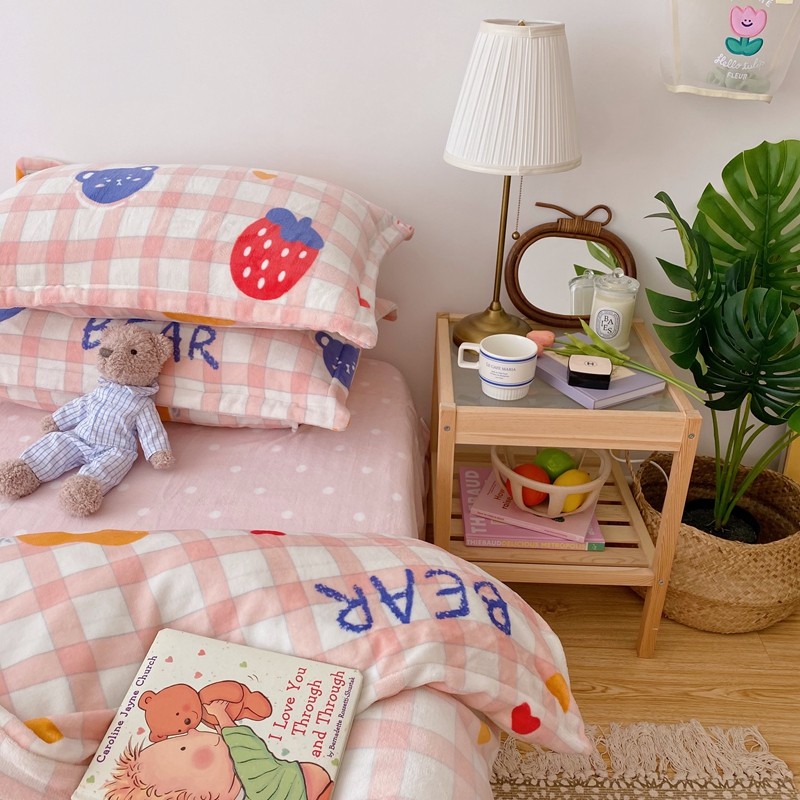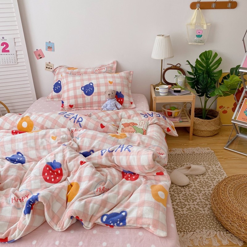 星期八 2020新款秋冬加厚保暖牛奶绒四件套 格子草莓