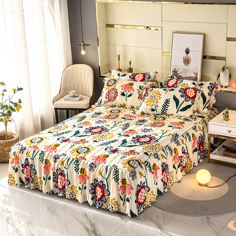 纽缦 2020新款绒夹棉床裙 花花世界