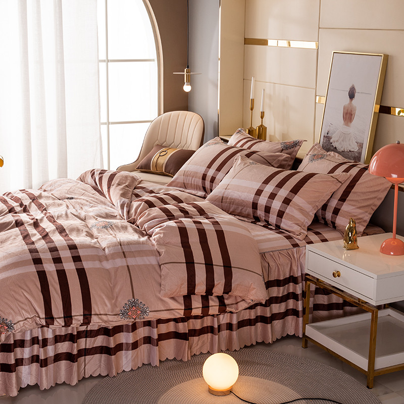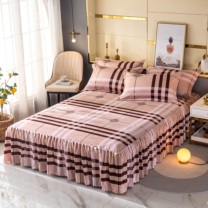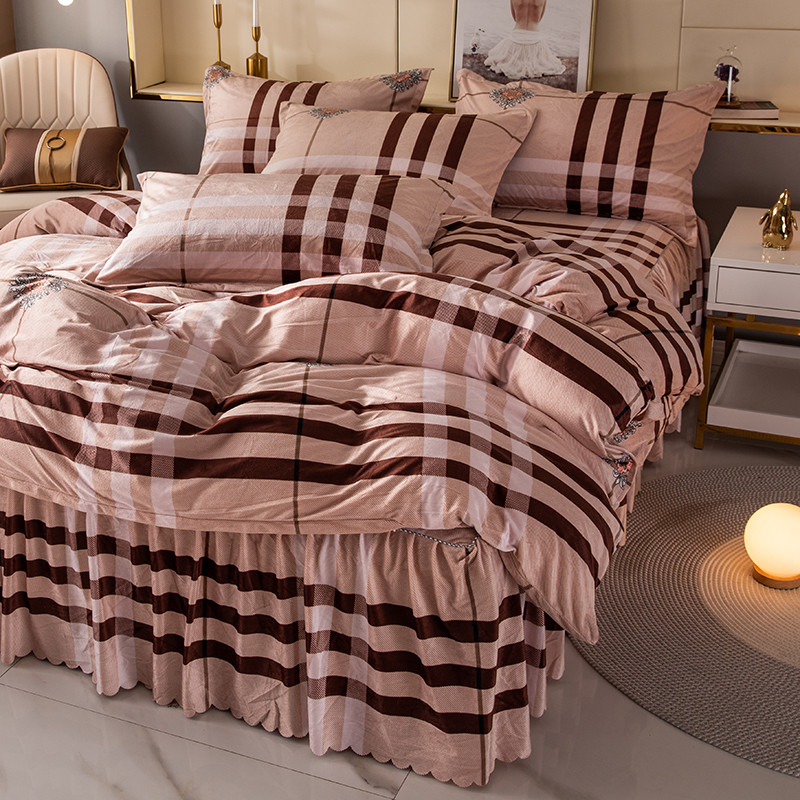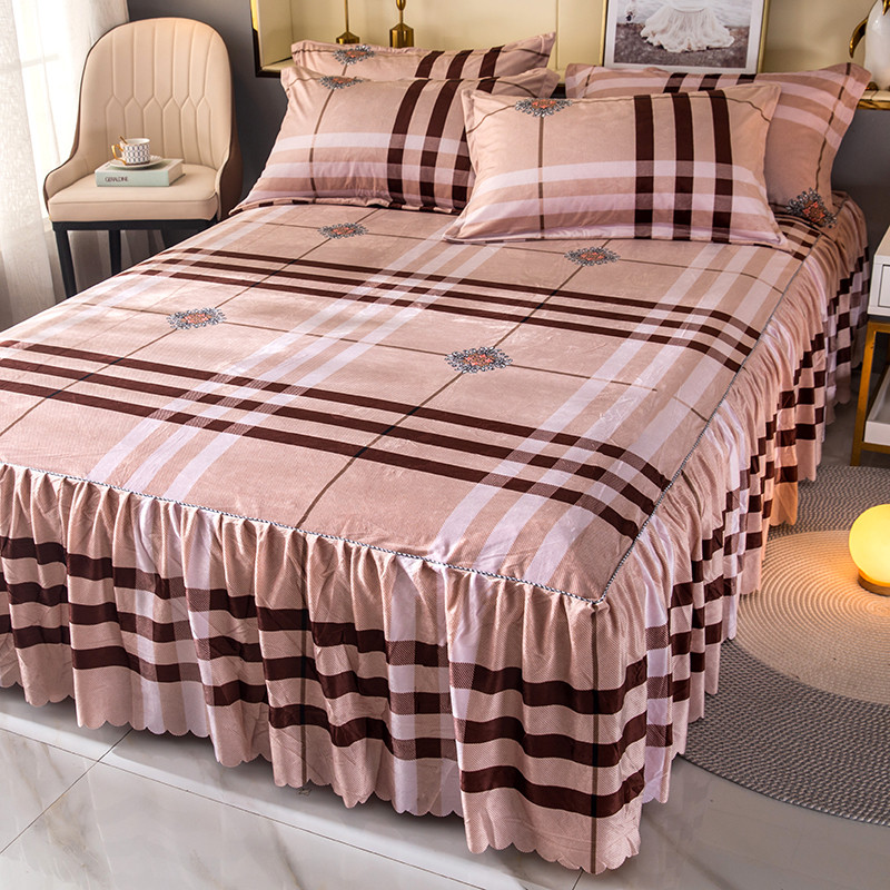 商品名称:纽缦 2020新款绒单层床裙四件套 花格子