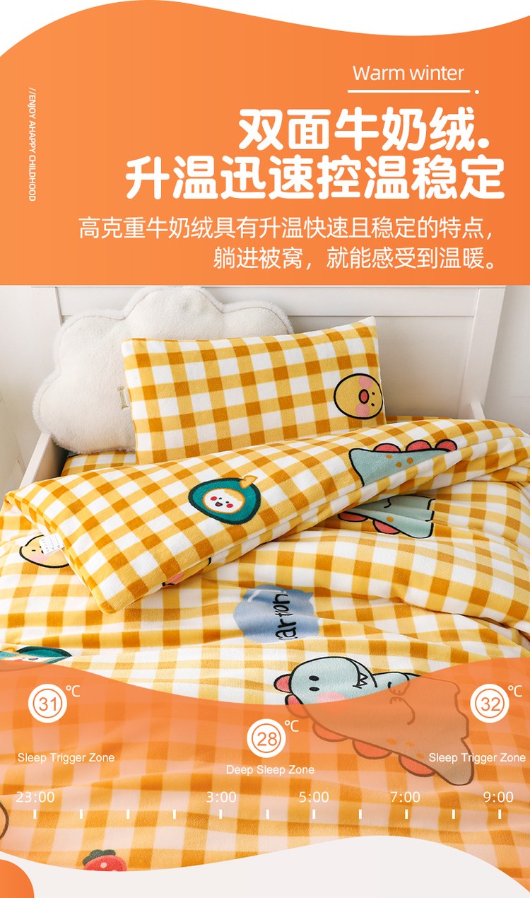 (总)鱼宝 2022新款儿童双面牛奶绒冬被,班尼熊,滴滴车队,海盐草莓,桔子,恐龙先生,兔子草莓,小兔姑娘