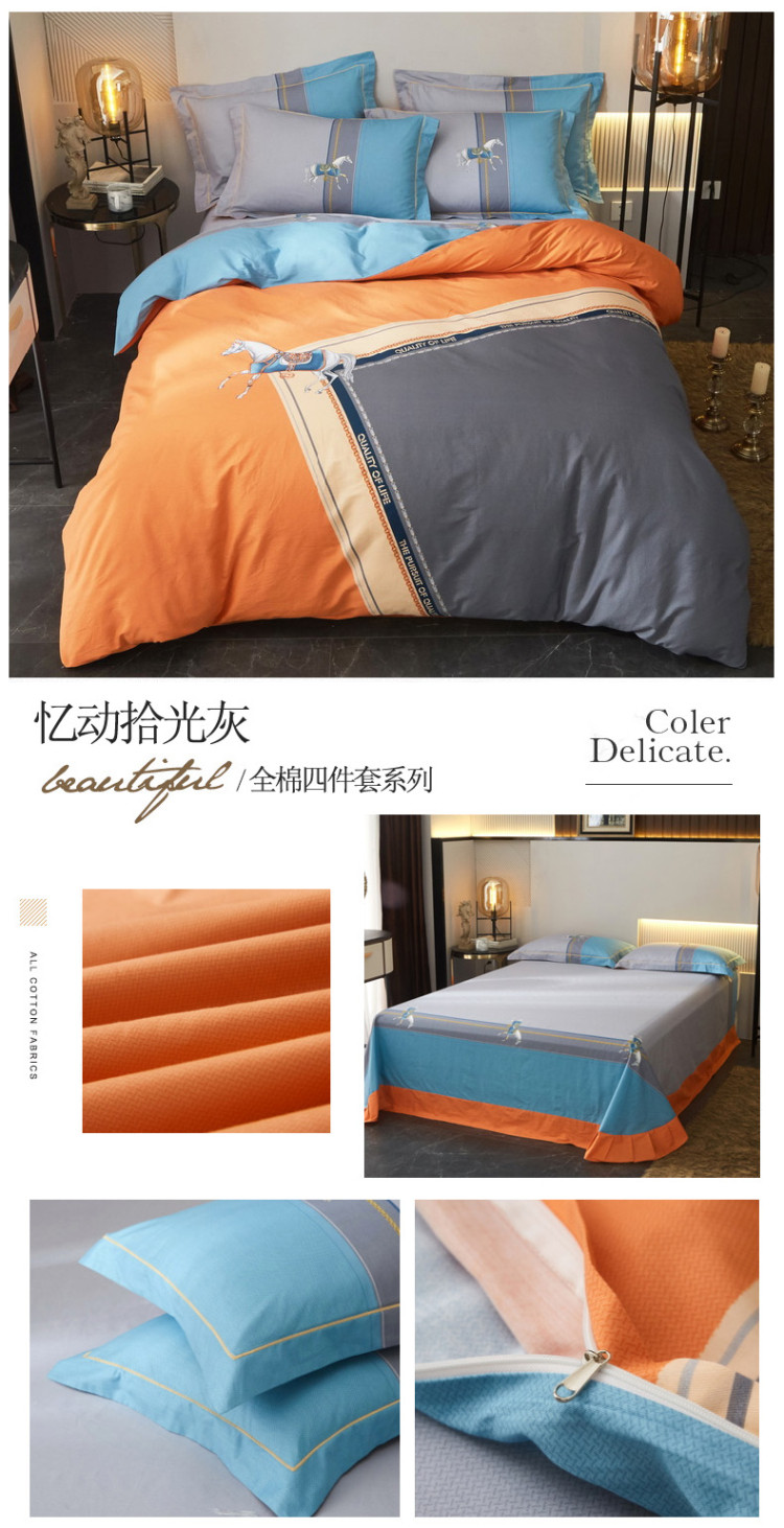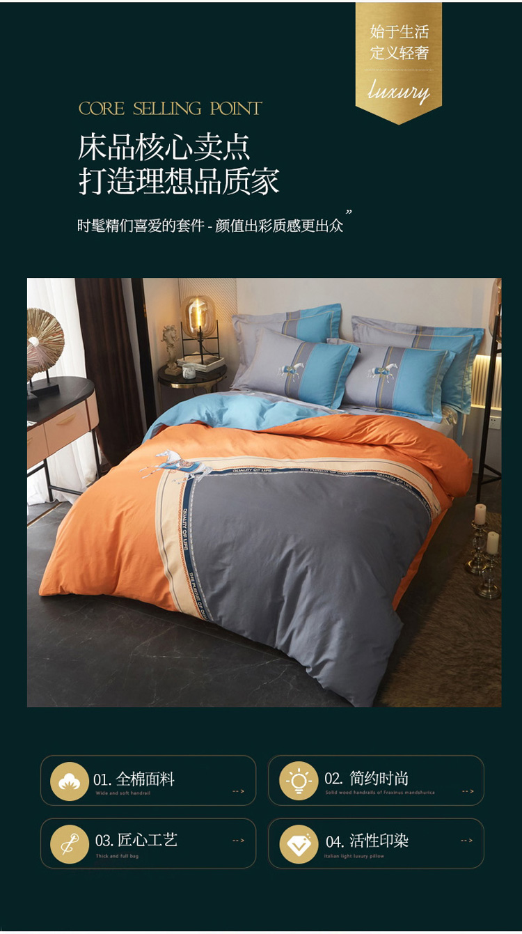 (总)启航家居 2025直播爆款全棉纯色磨毛刺绣四件套古欧时尚系列,古欧时尚宾利蓝,古欧时尚豆沙,古欧时尚浅橙,古欧时尚优雅紫,古欧时尚珍珠白