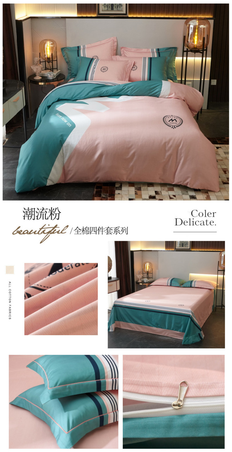 商品名称:启航 2021年爆款全棉春夏新品四件套 潮流粉