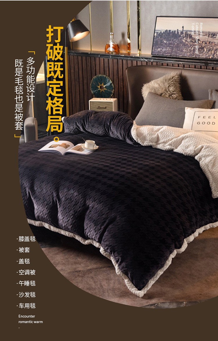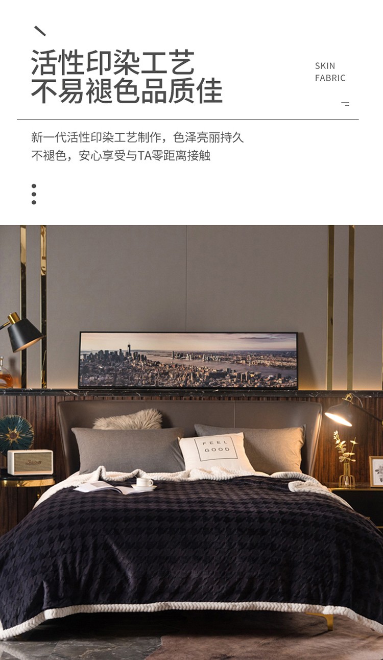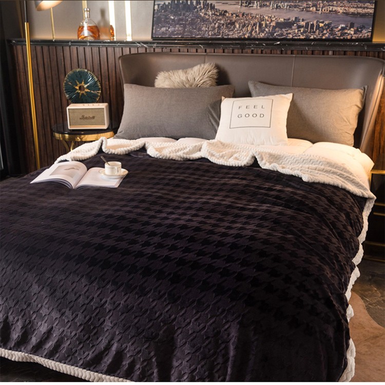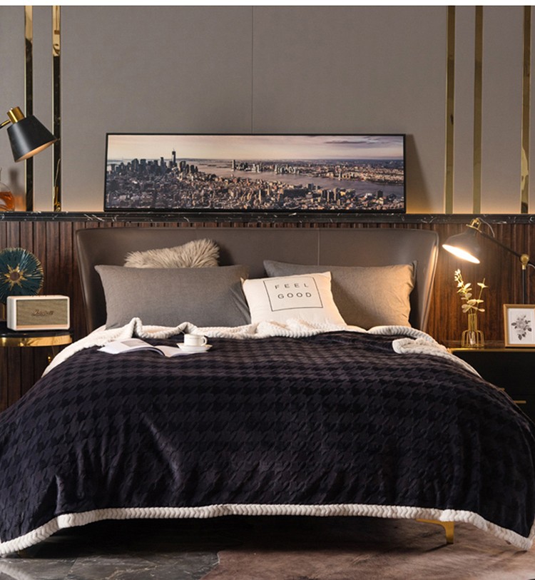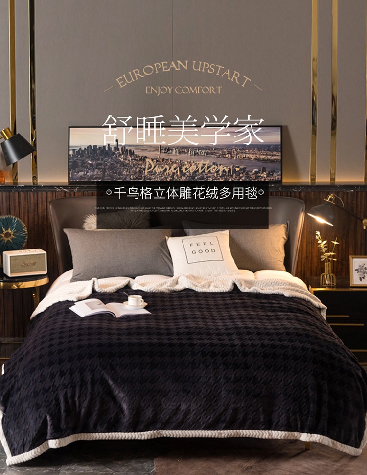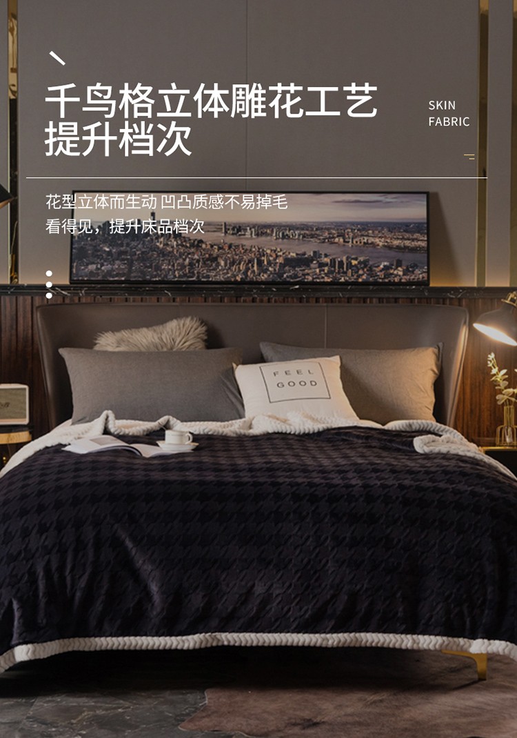 网客 2024新款千鸟格立体雕花绒多用毯 深灰