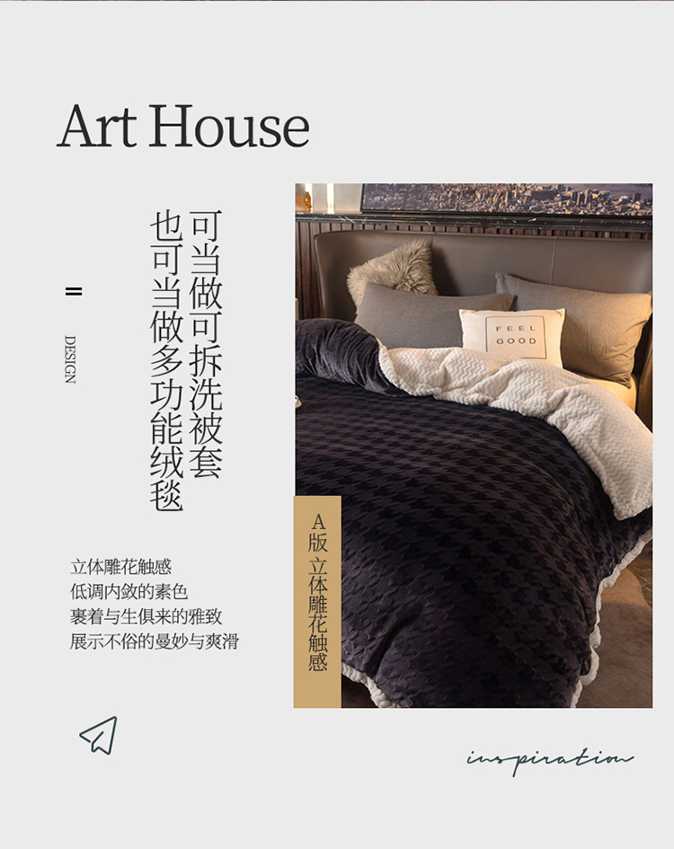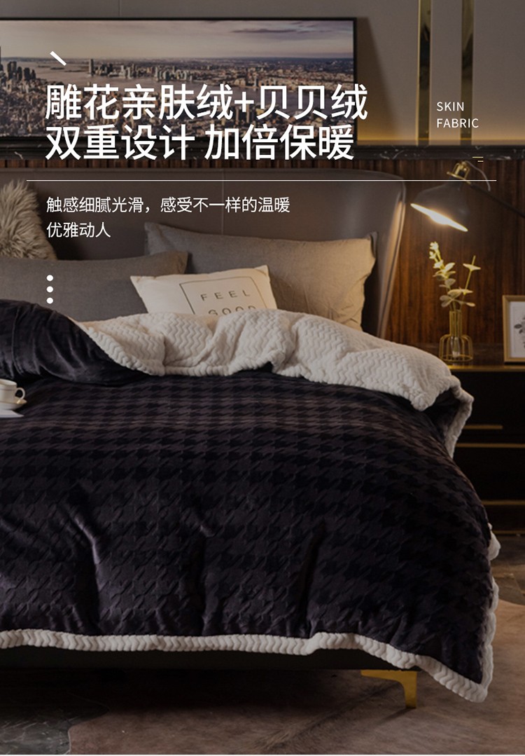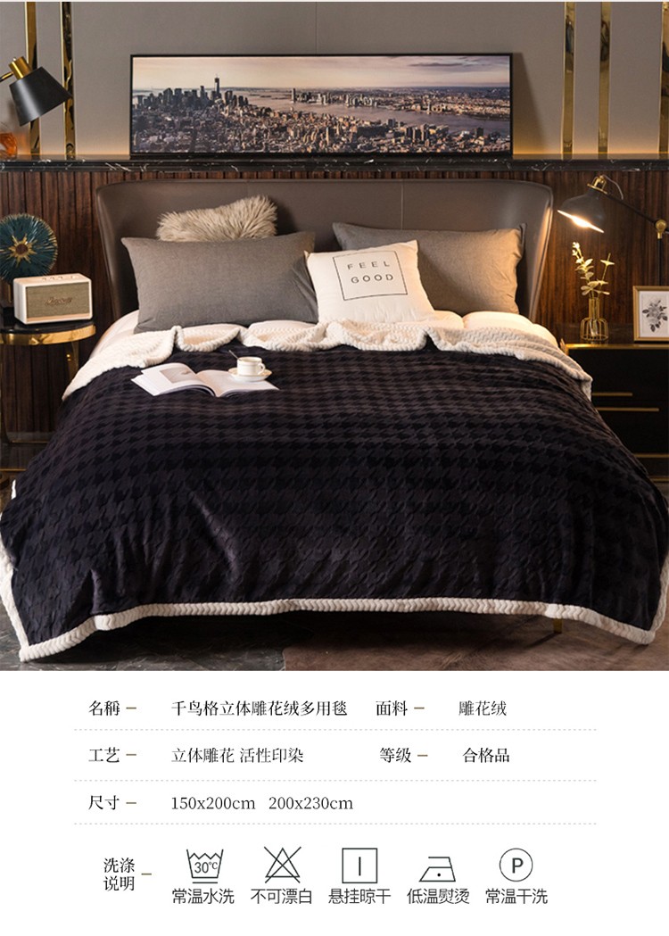 商品名称:网客 2024新款千鸟格立体雕花绒多用毯 深灰