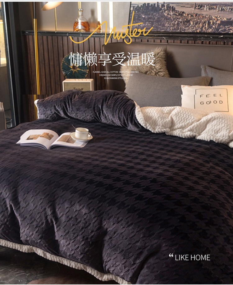 (总)网客家纺 2025新款羊毛绒牛奶绒夹棉床盖四件套,豹点-深灰,简格-黑色,简格-咖色,空间-红色,泥点-灰色,泥点-咖色,维奥-灰色,斜格-灰色,斜格-墨绿
