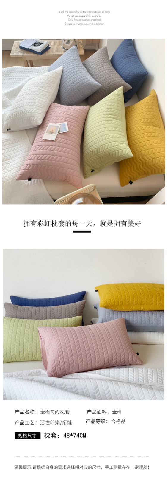 商品名称:全棉水洗棉夹棉枕套绗缝加厚枕头套可水洗简约酒店枕巾